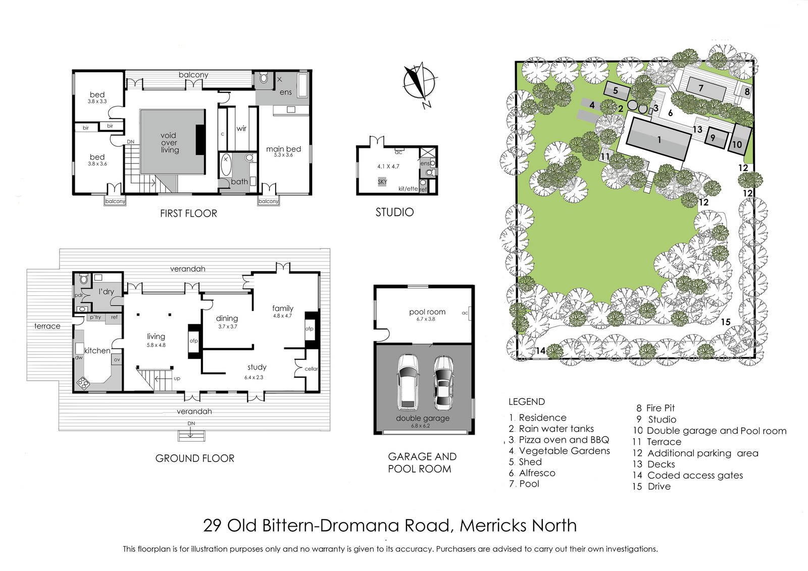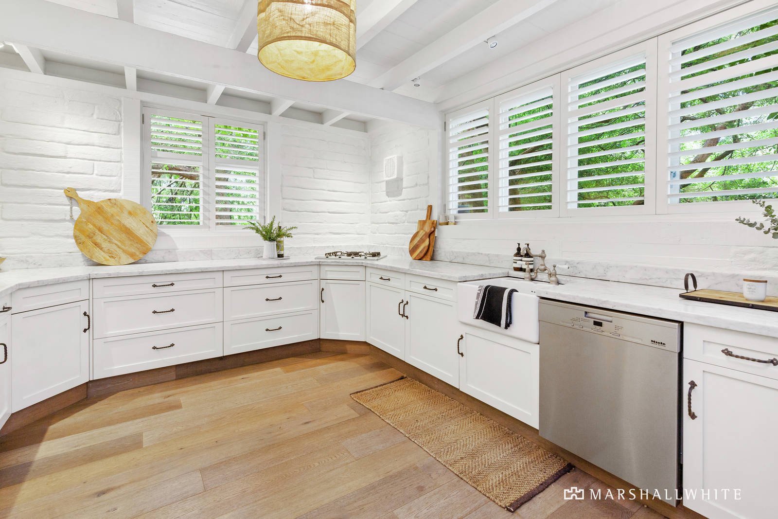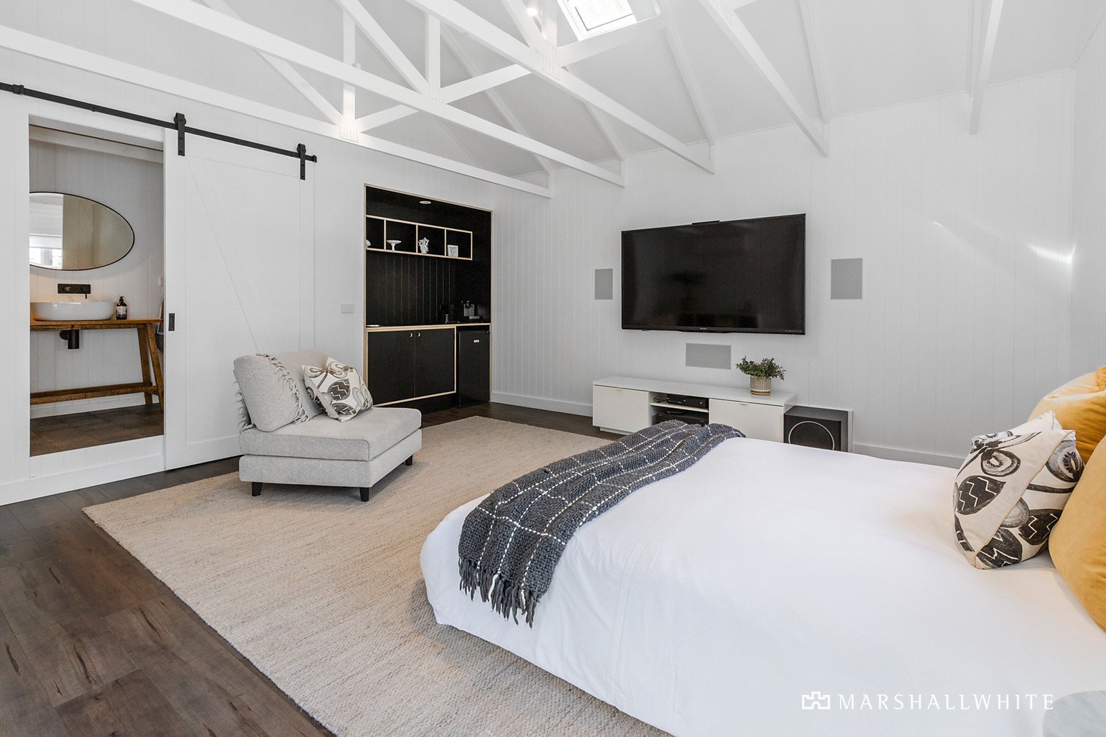 Feel like you're in Provence every day in this magical 4 bedroom 3.5 bathroom provincial farmhouse. On a rolling 2.5 acres approx. with a winding driveway, citrus grove, kitchen garden and a sumptuous heated pool, this eye-opening escape offers exclusivity, privacy and the perfect backdrop to create a lifetime of family memories. Stunning with its use of flagstone, painted mud brick and conservatory style window treatment, coupled with shiplap walls, French Oak floors, barn doors, Juliet balconies and beamed ceilings, this exquisite home is the perfect infusion of provincial character and modern amenity. Open and airy with various French doors opening to the decked and pebbled terraces, this beautiful home enjoys a stunning lounge with authentic French fireplace, iron chandelier and a 2-storey void above, an elegant dining room, relaxed family room with open fireplace and a versatile study/mudroom. The marble kitchen has more of a Hamptons style theme with its shaker cabinetry, Miele appliances and farmhouse sink overlooking the kitchen garden. Upstairs, you'll find a superb main bedroom with custom solid timber walk in robe and Italian travertine ensuite (patinaed copper shower base) with luxe natural stone; a matching bathroom and 2 spacious bedrooms, each with built in robes. The gardens are magnificent offering several places to entertain, including a heated pool surrounded by boardwalk decking, a fabulous fire pit, a barbecue area with pizza oven and a hidden garden terrace overlooking the rolling lawns. A private guest house with kitchenette and ensuite is the perfect place to entice family and friends to stay, and there's a fabulous billiards room behind the double auto garage. With the comforts of panel heating, air conditioning, a garden shed and a coded gate for access, this unrivalled abode is absolute bliss. Surrounded by wineries and vineyards, horse studs and farmlets, while only minutes to Balnarring Village for all your shopping essentials, fine dining and decor, and beyond to Balnarring Beach.