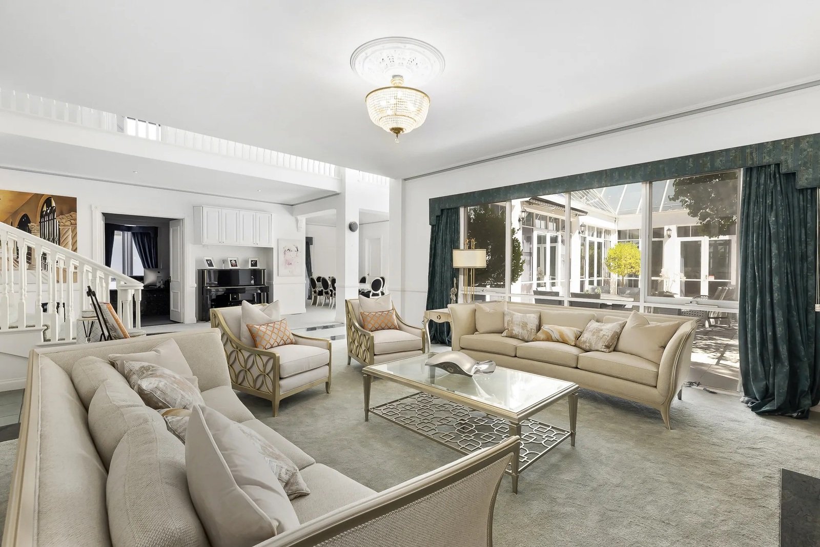 Designed for large or extended families, the home features five spacious bedrooms, each with direct access to a bathroom, along with a dedicated study, ideal for working from home or quiet retreat. Multiple formal and informal living zones provide generous space for relaxation and entertaining, including a poolside living area with a wet bar, perfect for year-round entertaining. The well-appointed kitchen and adjoining butler’s kitchen cater effortlessly to family living.
