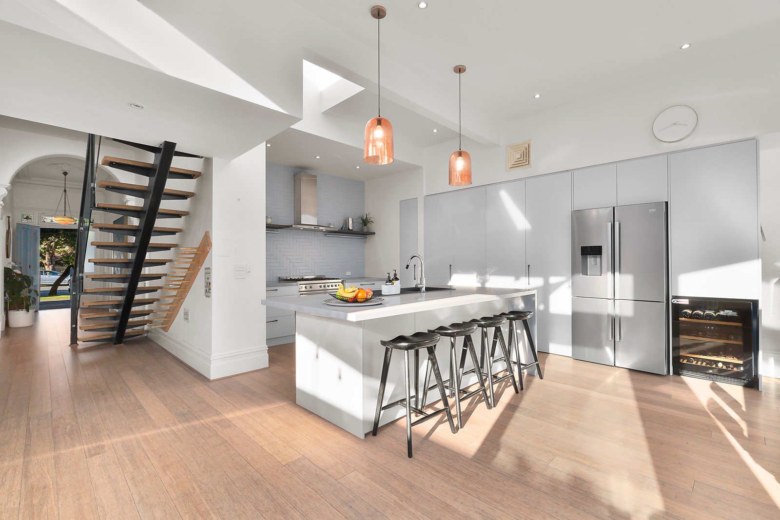 Beneath high ornate ceilings and with a traditional arch, the wide central hall introduces exceptionally spacious adjoining sitting and living rooms with an open fire and magnificent ceiling roses. Pale timber floors and floor to ceiling glass accentuate the sense of light throughout. Superbly appointed with a 90cm Smeg oven and stone benches, the gourmet kitchen and light-filled dining area open out to the private, easily maintained garden with sail covered deck, solar heated pool and secure off street parking. The serene main bedroom with walk in robe and chic en suite is downstairs while a sleek modern staircase leads up to a children's zone comprising three additional bedrooms, two stylish bathrooms, oversized family laundry and a retreat with study nook and north facing covered balcony.