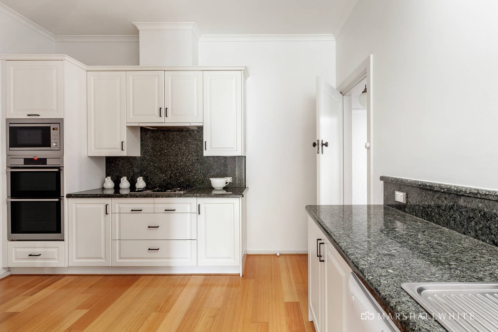 A distinctive black trimmed façade introduces a light bright, fresh white interior decor with polished timber floors leading to a sitting room and adjoining dining, a pristine family bathroom, five zoned bedrooms, all with BIRs, main with a fully-tiled ensuite and one upstairs alongside a generous family retreat and balcony. A sky-lit central kitchen equipped with premium Euro appliances, granite bench tops and an adjacent laundry flows through the family dining and living room to the deep rear garden and outdoor dining area - a superb oasis for relaxing outdoors or entertaining. Other features of the home include ducted heating, high quality fixtures & fittings, plantation shutters, extensive storage including roof, former garage/workshop plus a garden shed and double carport.