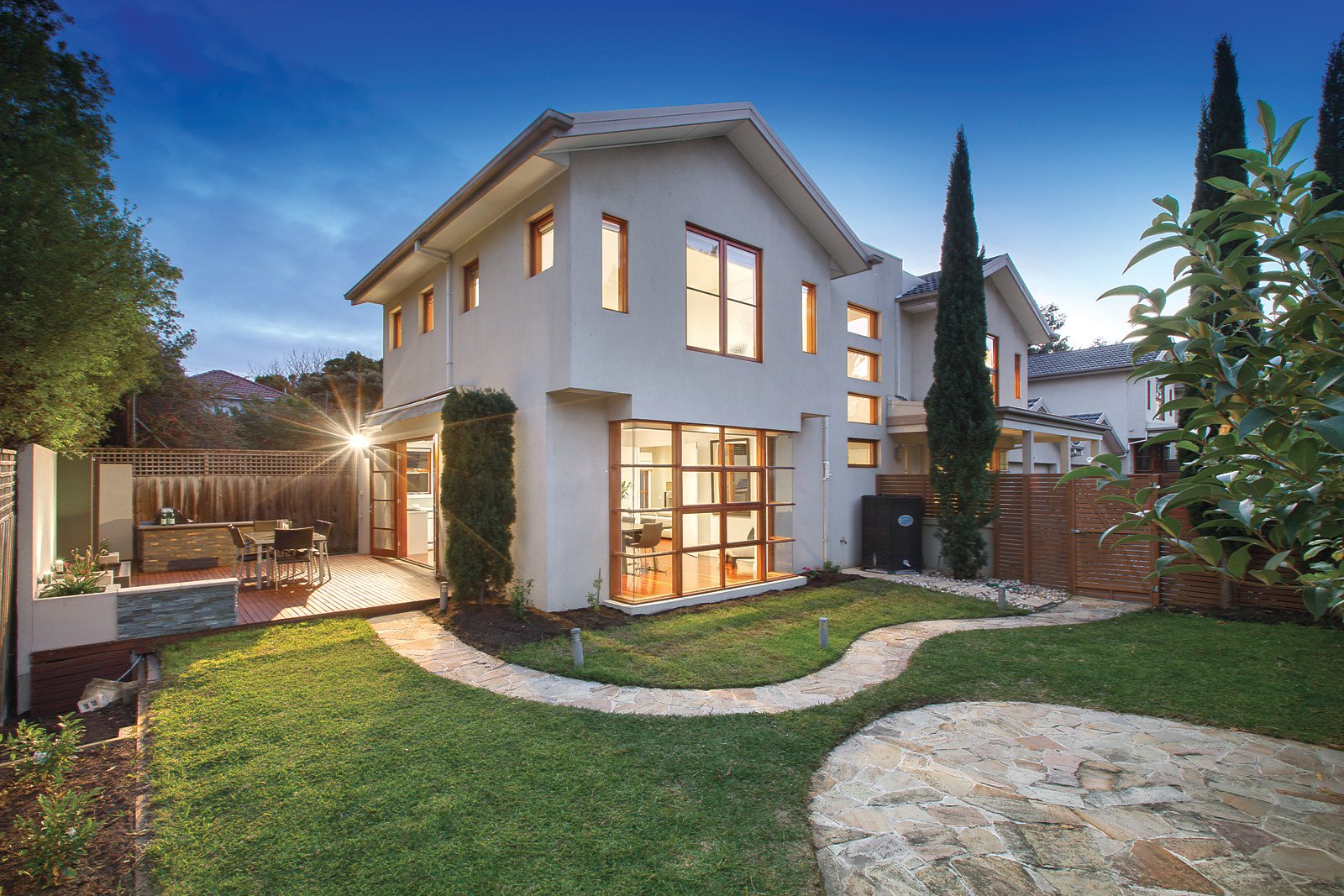 Streaming with natural light, this sensational contemporary residence's generous and intelligently zoned dimensions provide an exceptional footprint for family living and entertaining in a secluded and serene pocket close to Glen Iris station, schools, Gardiners Creek bike path and freeway access.