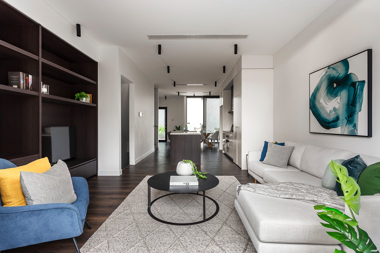 Flooded with natural light, this brand new contemporary residence provides the space, zoning and luxury required for modern day couples, empty nester lifestyles or smart investors. An inviting open plan living and separate dining room with a stunning gourmet stone kitchen opens to both the East and West into private landscaped courtyards, ideal for al fresco dining. On the level above, there is a beautiful bedroom with chic ensuite and robes, second double bedroom with robe and a stylish family bathroom. The basement level comprises a laundry and two car tandem garaging. Perfectly situated near Terminus Village and trams, schools, Darling station, parks and freeway access, it includes an alarm, video intercom, remote blinds, heating/cooling, double glazing and smart home automation.