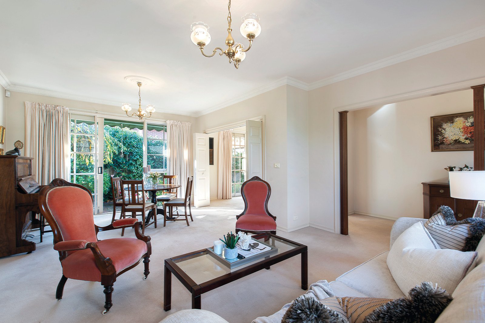 The deceptively spacious interior features a neutral toned decor with an abundance of natural light filling its living areas with northern sunshine. An entrance hall opens to a formal sitting and dining room through to an informal family room with a delightful well-equipped timber kitchen and adjacent laundry leading to a sunny wrap around courtyard garden with paved outdoor dining area. Complemented by three bedrooms, the main has a WIR and ensuite; plus a family bathroom. Other features include intercom, alarm, ducted heating & vacuum, Weather Wall air conditioner, gasFP, fully-tiled bathrooms, ample storage and a remote double garage with turning area.