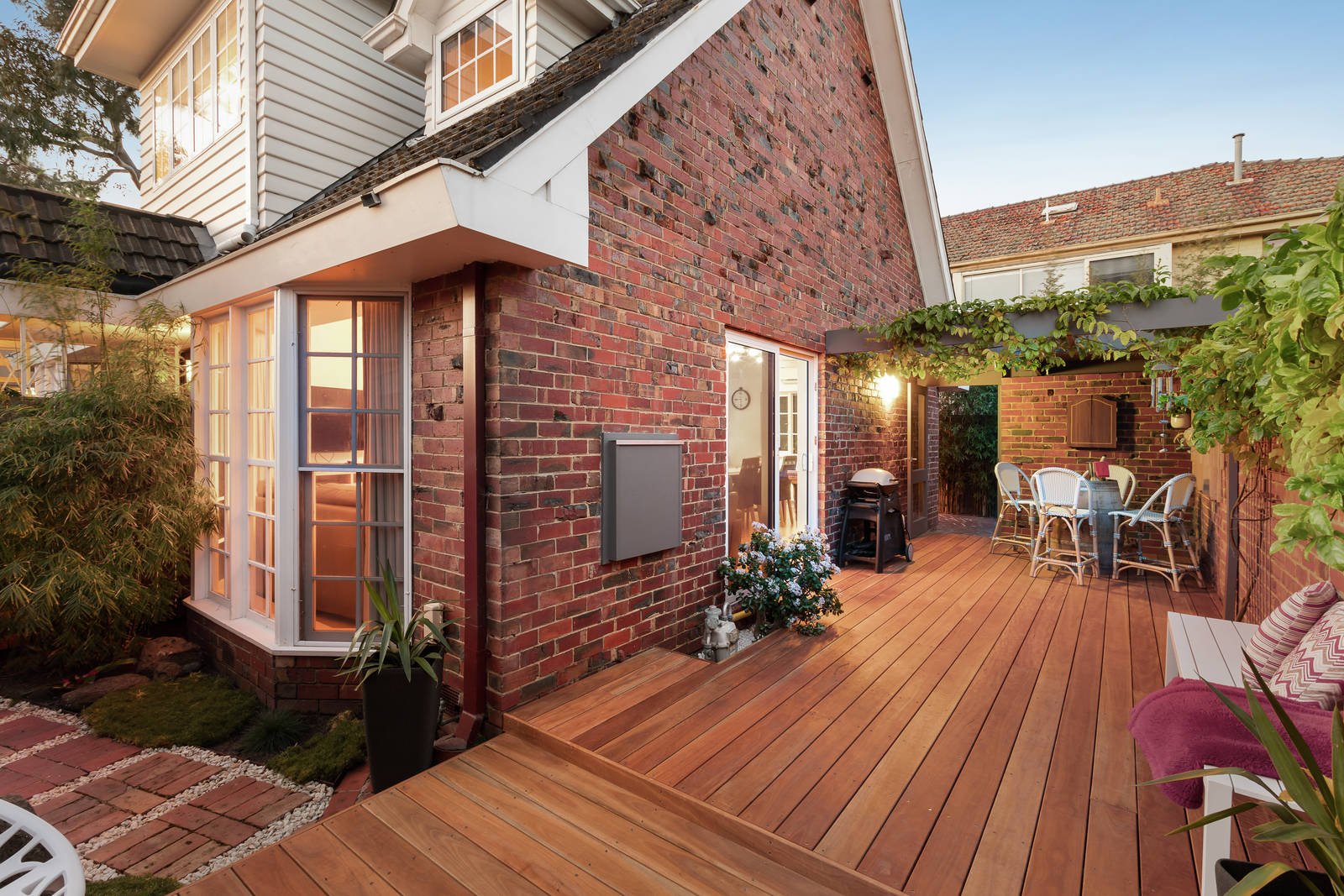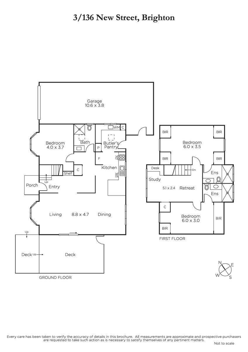 State-of-the-art features and finishes brings new luxury and quality to this three-bedroom, three-bathroom townhouse, ideally located near the beach, schools and Church Street. Set well back from the street, this rear, stand-alone residence is a private hideaway full of light and fine craftmanship. There is the bonus of both ground and first-floor bedrooms and bathrooms, an upstairs retreat with study nook and a timber-floored living and dining zone which flows out to courtyard decking. There is nothing to do except enjoy the complete transformation of this well-maintained home. The kitchen and butler's pantry are designed with Shaker-profile cabinetry, Stone-Quartz benchtops and Siemens appliances. Every room has a new look, including the ground-floor bathroom and two upstairs ensuites. Step outside to both open and undercover deck areas shaded by a passionfruit vine, a rear paved courtyard area, and your own 2-car garage. Inspired by Cape Cod architecture, this clinker-brick residence includes double-glazing upstairs, integrated storage, hydronic heating, split-system air conditioning, ceiling fans, and feature tiling in wet areas. Ultra-convenient location being just a short stroll to a choice of schools, Dendy Street beach and the shopping, cafes and transport that Church Street has to offer.