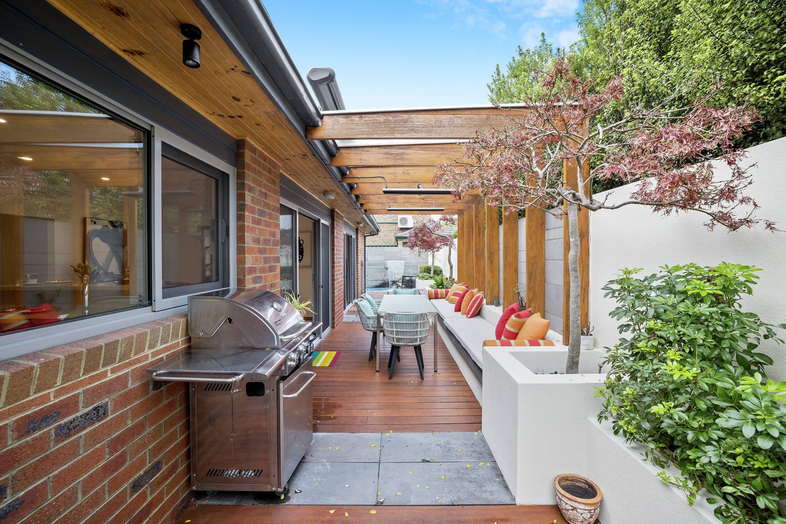 Nestled in an exclusive pocket and bathed in an abundance of north facing sunlight, this lavish single level townhouse presents resort style living in a prime bayside location. Set on an allotment of approx. 387sqm and architecturally designed, this impeccable residence is generously proportioned and appointed with timber parquetry floors and plentiful storage throughout. Striking interiors are complemented by large windows framing leafy vistas of the multiple alfresco zones evoking a sense of tranquillity and calm. Expansive living and dining areas showcase a wonderful sense of occasion and provide the optimal setting for relaxation and abundant entertainment opportunities, opening out to a private outdoor sanctuary complete with gas heated swim spa and dining zone with motorised cassette awnings and heating. A well equipped kitchen showcases quality Miele appliances, including an induction cooktop, steam and roasting oven and dishwasher set against superb stone benchtops. Three magnificently sized bedrooms all offer abundant storage, with the expansive main bedroom featuring an adjoining walk in robe and a luxurious ensuite, opening out onto a sunny north facing alfresco retreat. Comprehensively appointed, additional features include a powder room, separate laundry, linen cupboard, Brivis cooling, ducted heating, video intercom, ducted vacuum and double garage. In an exceptional lifestyle locale, moments from vibrant dining and retail on Bay and Church Streets, Middle Brighton station and esteemed schools, this residence presents a rare opportunity for families and downsizers to experience the best of bayside living.