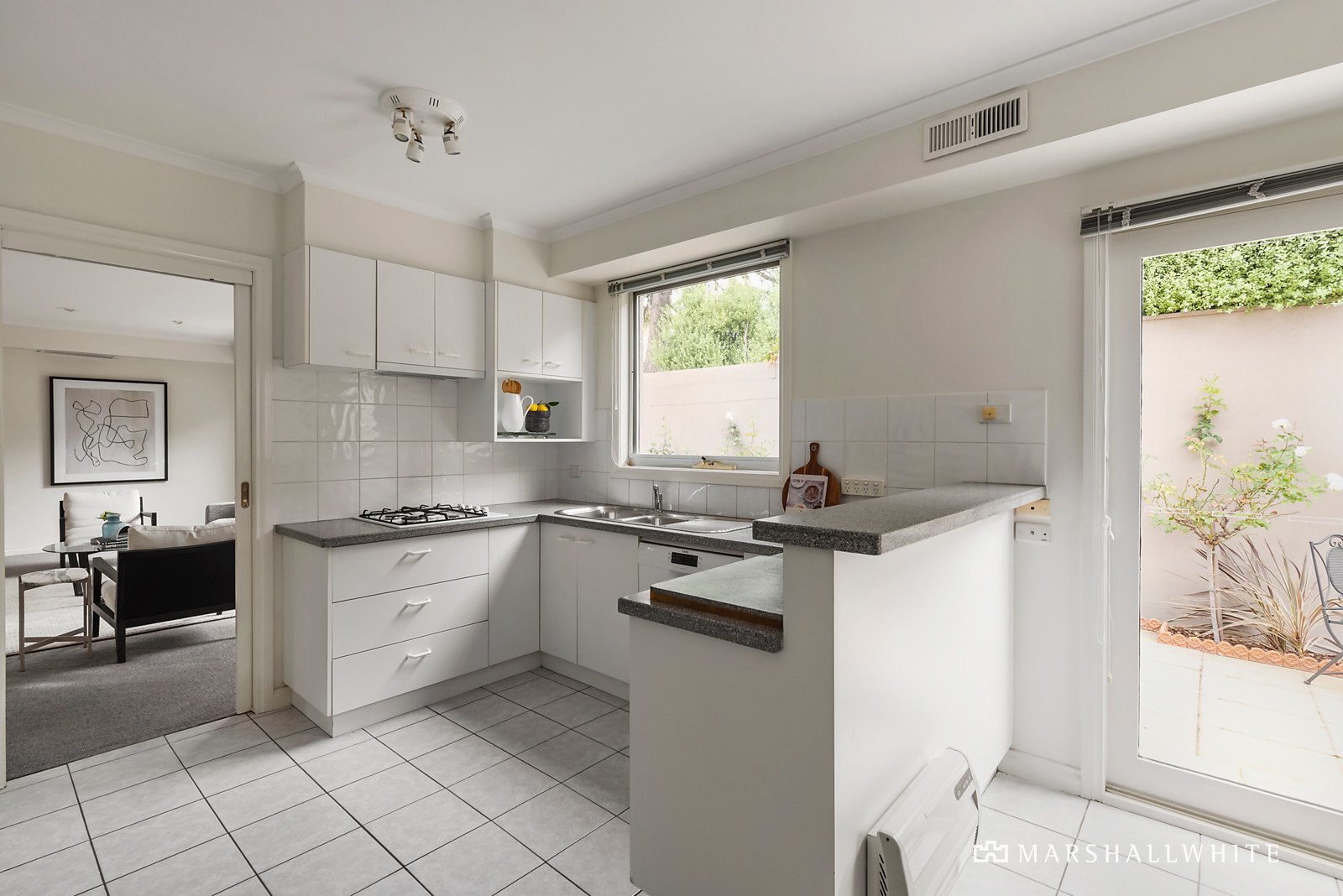 Set in a neatly maintained garden enclave, this property is deceptively spacious and immaculately presented; featuring a combined living and dining room incorporating a stylish kitchen well-equipped with Euro appliances, adjacent laundry and powder room. Opening to a generous paved courtyard with a gas mains barbeque and lined with standard roses - providing a secluded area for alfresco dining, entertaining or just relaxing outdoors. Whilst upstairs has a study area along with three bedrooms, a main with WIR and a dual access sparkling family bathroom. Other attributes include intercom, R/C air conditioners, ducted heating, high quality fixtures & fittings, rain water tank and a remote garage/storage with courtyard access.