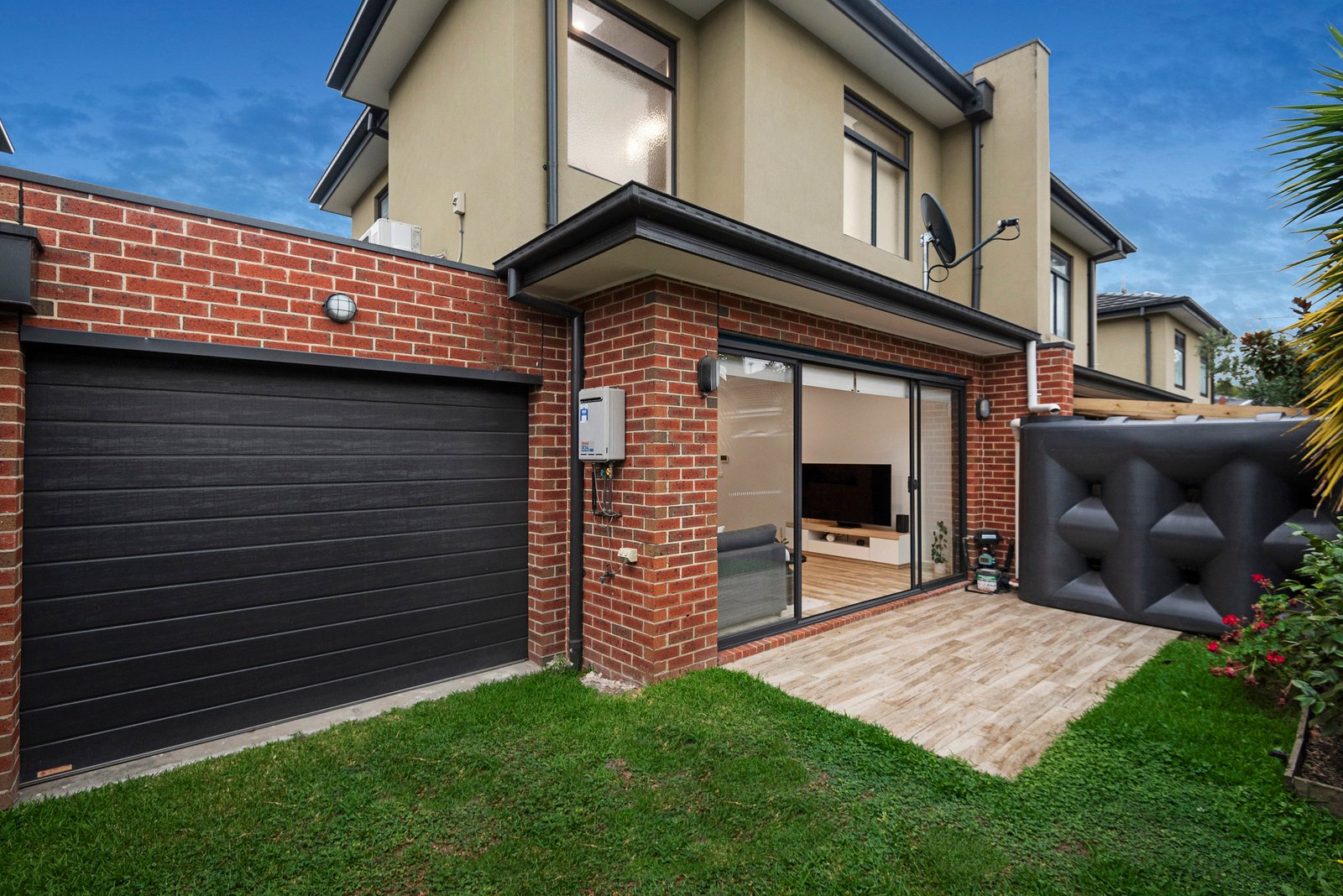 Backed by a stone-topped galley-style kitchen with stainless steel Bosch appliances, a streamlined dining / living room flows effortlessly outdoors to an entertaining area and an easy-care backyard with a rainwater tank. Upstairs, the primary bedroom plays host to a fully-tiled designer ensuite and large walk-in robes, whilst the second bedroom – also with built-in robes - is adjacent to the central bathroom. Further highlights include a double-ended lock-up garage, a large study / third bedroom, a concealed laundry, powder room, double block-out blinds, split system heating and air conditioning.