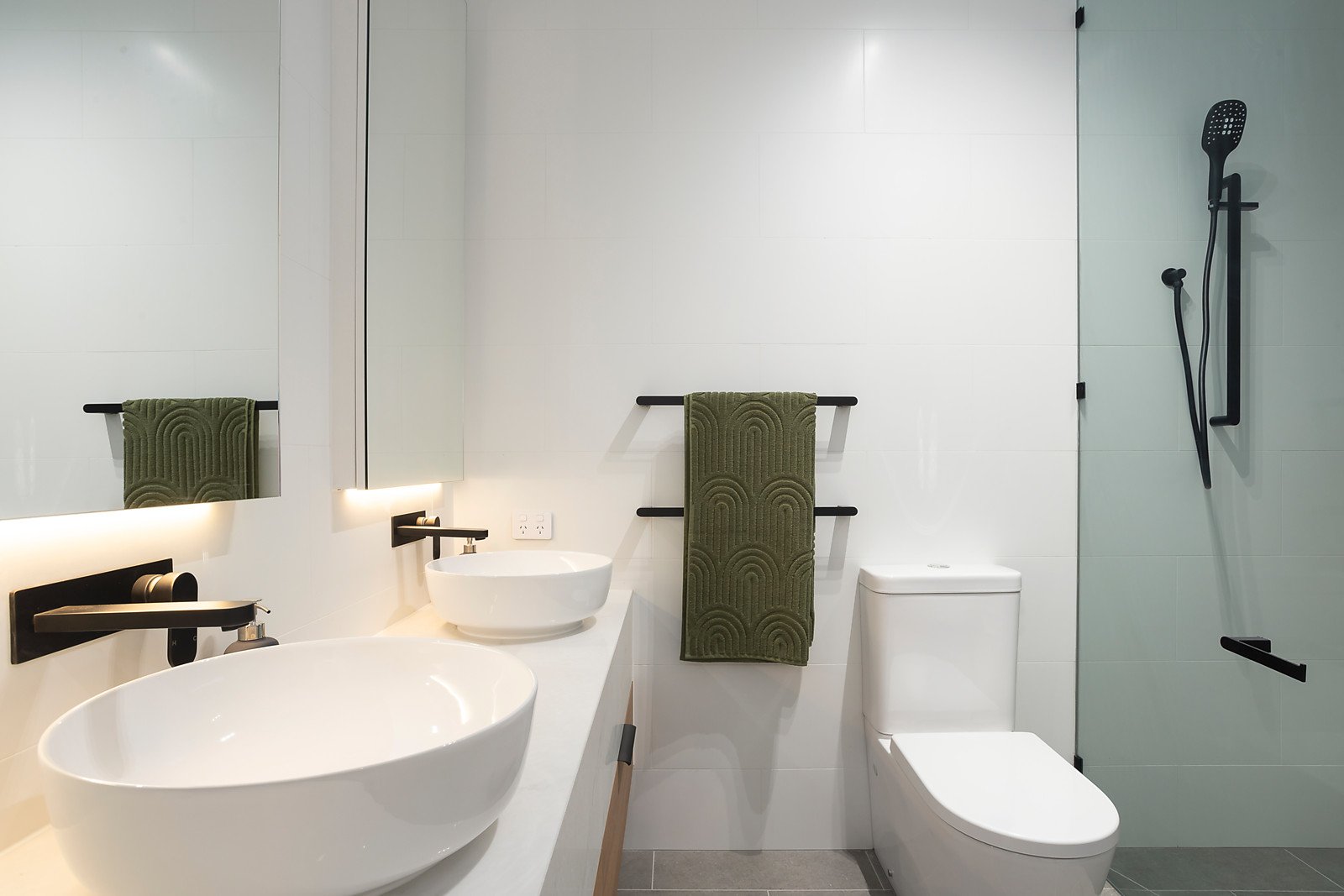Accommodation upstairs comprises 3 double bedrooms; the main bedroom with designer ensuite and walk-in robe plus 2 additional bedrooms with BIRS (one with ensuite), and a stylish central bathroom. An additional bedroom /study is at ground level, looking out to the courtyard featuring ensuite and WIR.