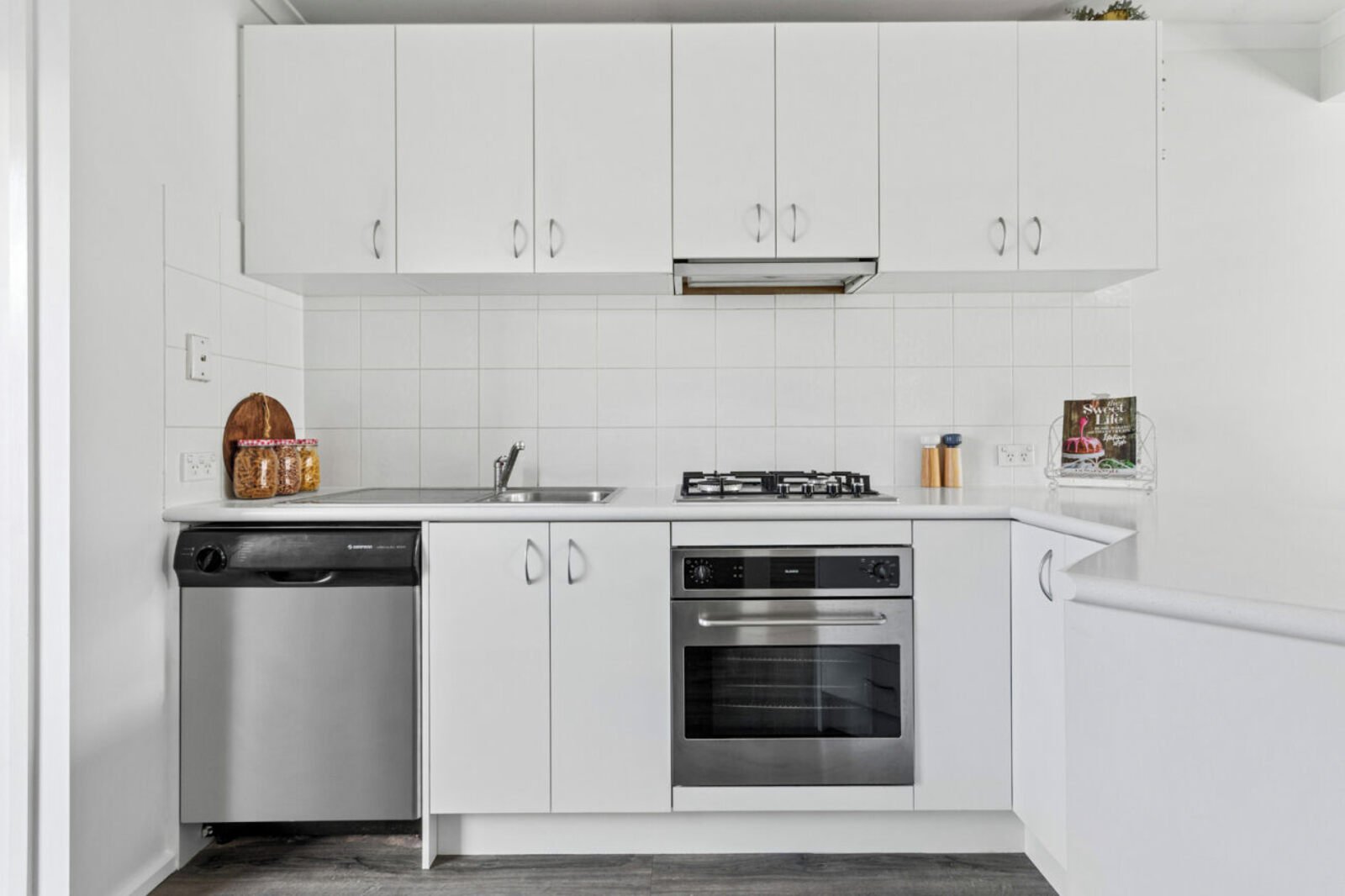 Well-maintained and meticulously presented, the home’s light-filled interior includes an open plan living/dining area which flows to the kitchen with stainless steel appliances, dishwasher and stylish white tiled splash back. The kitchen with euro style laundry space leads out to a secure and private fully paved rear courtyard with garden shed for extra storage and a perfect for relaxed entertaining.