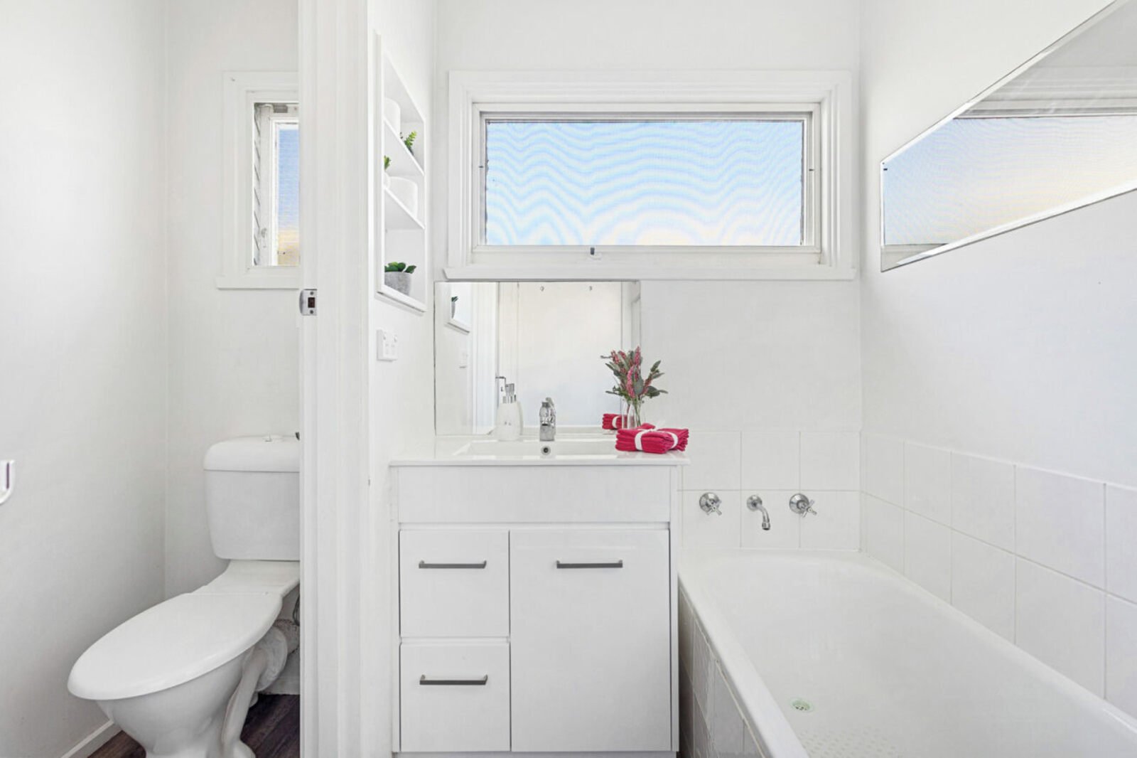 Back inside, the two bedrooms are both of a good size and have built-in fitted robes. The central and tidy bathroom features a bathtub and separate shower with an abundance of natural light. Other inclusions are split system heating/cooling, updated window furnishings and carport space.