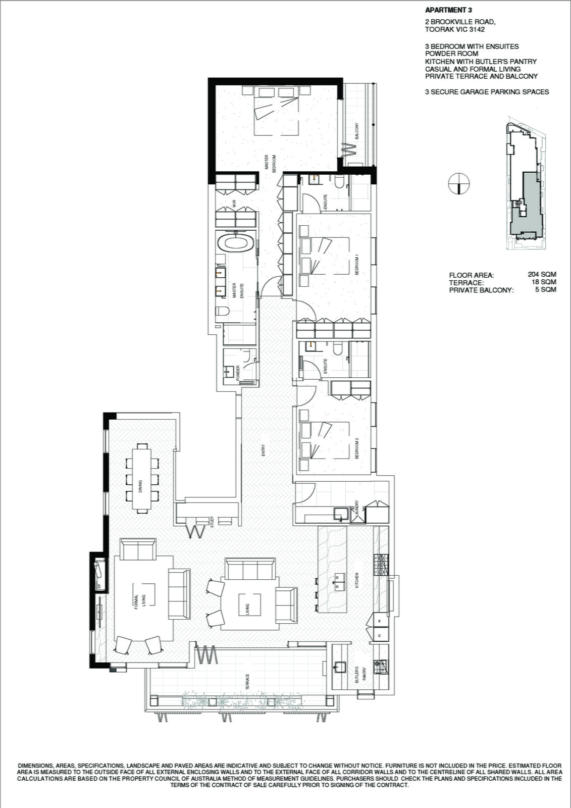 Refined living, dining and entertaining spaces of exceptional scale featuring oak floors and gas fireplace open out to a private north-facing terrace. At the centre of the living areas, the stunning gourmet kitchen is appointed with marble benches, european appliances and butler's pantry. Serenely set in its own wing, the palatial main bedroom includes an equally spacious walk in robe and opulent en-suite with freestanding bath. The two additional double bedrooms boast en-suites and built in robes. Secure, stylish and spacious, this sophisticated residence also includes an alarm, video intercom, lift access, powder-room, laundry and 3 basement car-spaces.