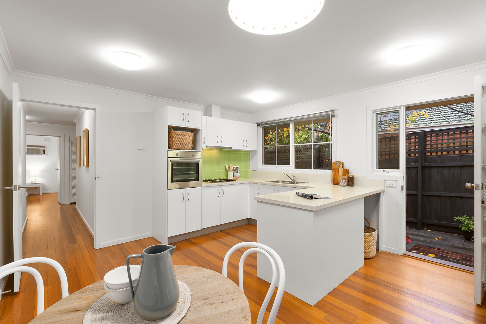The home features polished timber flooring flowing from the entrance hall through to a generous living and dining room combined and a light and bright Euro and CaesarStone kitchen with meals area and provision for a washing machine - leading to a wrap-around courtyard garden with room for outdoor dining or entertaining. Plus two bedrooms, one with WIR and the other with BIR alongside a renovated bathroom with separate WC. Other features of this delightful home include quality fixtures and fittings, ducted heating, R/C air conditioning to the living room, rear lane access if desired, remote garage and on site off-street parking.