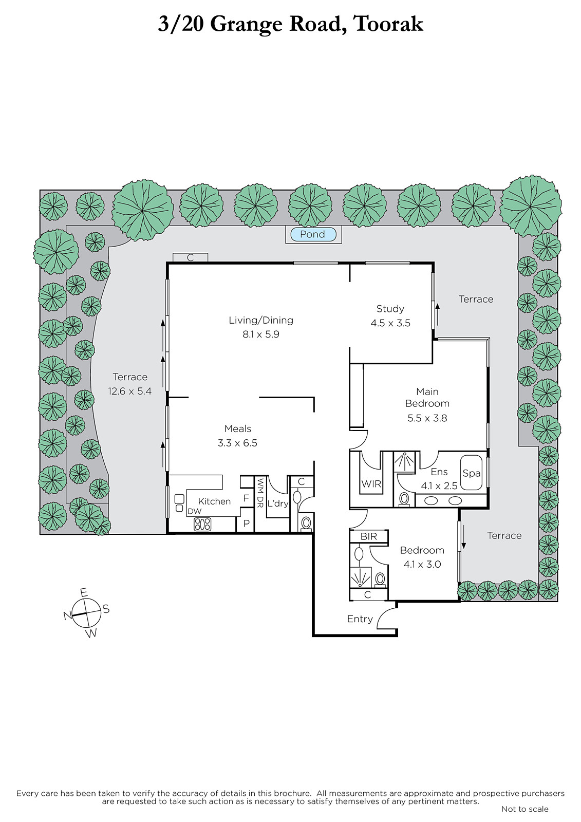 An inviting reception hall creates a wonderful first impression that is matched by the exceptionally spacious living/dining room and separate fitted library or retreat. The gourmet kitchen appointed with stone benches is adjacent to a casual meals area. All the living spaces open to a surrounding northeast private garden terrace. The beautiful main bedroom with marble en-suite and walk in robe is complemented by a second double bedroom with en-suite and built in robe.