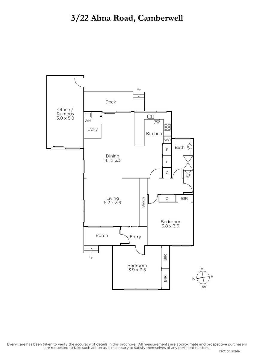 Entered from Inkerman Road, the welcoming central hall introduces an exceptionally generous living room bathed in northwestern light and an equally spacious dining room served by a modern gourmet kitchen with stone benches. The dining area opens to a deck offering leafy outlooks, a paved northeast courtyard and a versatile retreat or home office in the former garage. The two double bedrooms with built in robes share a fully tiled bathroom with separate toilet.