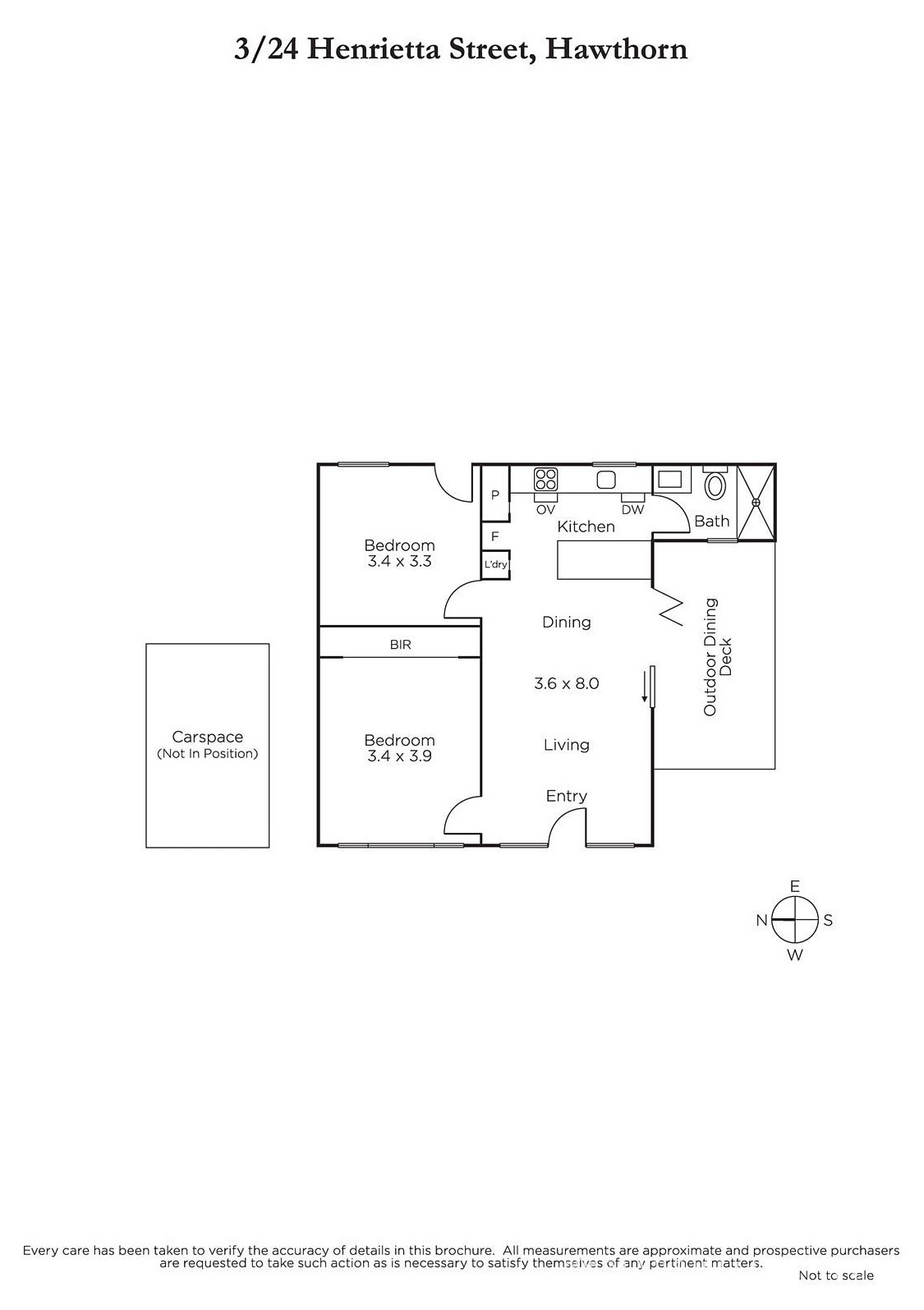 A visually striking kitchen highlights a tasteful combination of stainless-steel appliances, plenty of soft close cabinetry and bold black glass splash backs as it overlooks dining / living where concertina doors fold back to seamlessly include the deck. With a parking space conveniently adjacent to its front door, the home also features polished hardwood flooring, a wall of built-in robes in the main bedroom and a vogue bathroom, as well as split system heating and air conditioning.