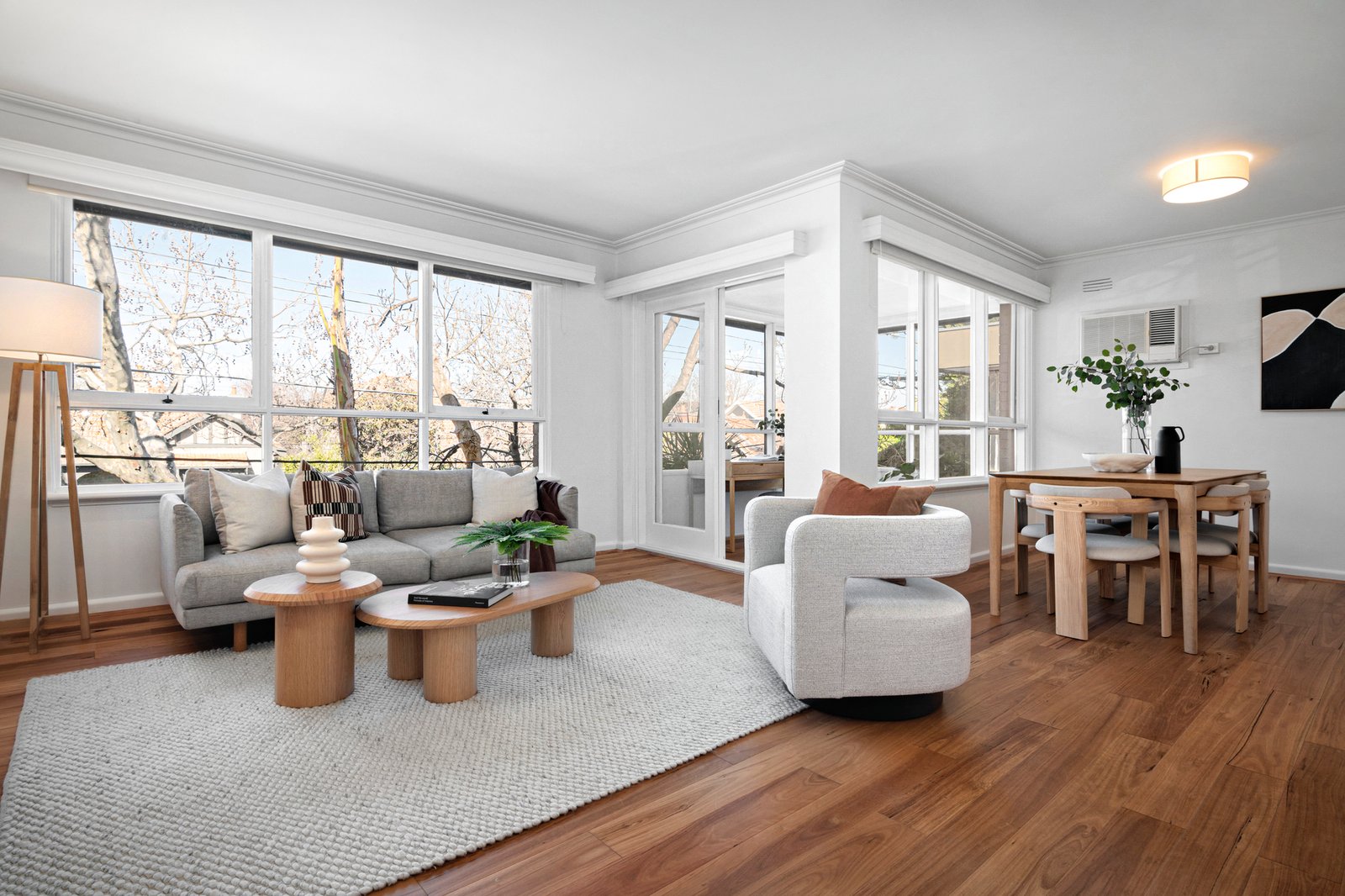 With house-like proportions and an abundance of natural light, this pristine, two bedroom plus study apartment is a unique offering that evokes a feeling of treetop sanctuary, in a premier position, just around the corner from the village-like vibes of Tennyson Street’s shopping strip. A short walk from the beach, city-bound transport options and Ripponlea Village, this is a supremely convenient apartment on the upper floor of a boutique block of four, with the added prize of rear parking, separate entrance, laundry facilities and attic access.