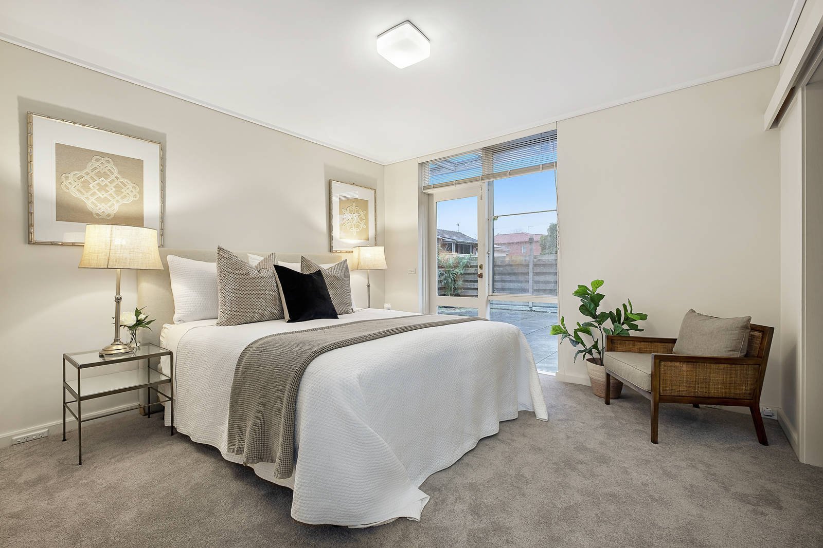 A deep rear position ensures both privacy and quiet surroundings for this refurbished two-storey contemporary town residence. One of only three in a complex which overlooks Edgevale Reserve, it enjoys a preferred northern rear aspect and generous, light-filled living spaces. With the downstairs accommodation highlighted by limed timber surfaces it features a powder room, generous living and dining room serviced by a modern kitchen and adjacent laundry opening to a side courtyard and rear paved alfresco entertaining area in the large, leafy garden. Whilst there are three upstairs bedrooms, two with WIRs or two plus a study with a dual access family bathroom and a sun-drenched terrace above the garage which provides a second private outdoor entertaining area. Other features include, new carpet, loads of cupboard storage, remote double garage with access to the rear garden and secure side courtyard.
