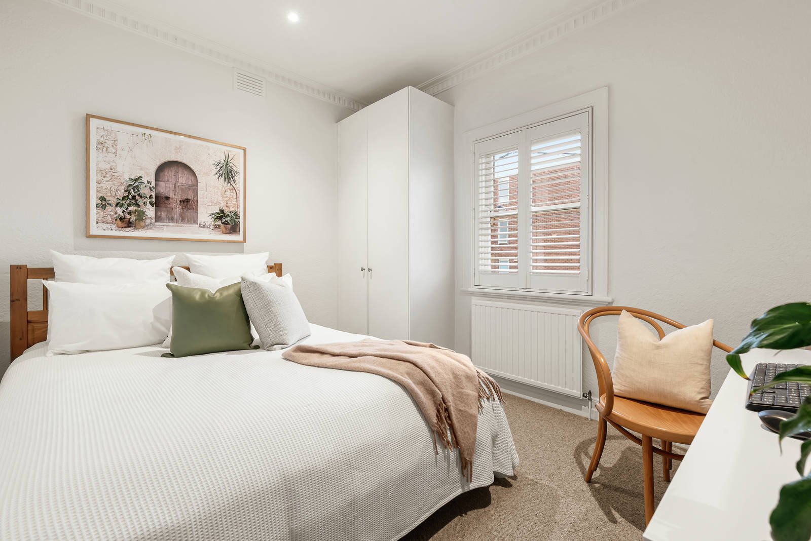 A rare, Art Deco discovery offering a superior inner-bayside lifestyle experience, this exquisite and large, two bedroom apartment combines all the benefits of boutique waterfront living with the sanctuary of a back-of-the-block position. Accessed easily via the rear from Ashworth St and with an abundance of permitted parking in Fraser St and on Beaconsfield Pde, this highly secure, first floor / top floor apartment is a surprisingly blissful domain between the vibrancy of Fitzroy St and the relaxed village-like charms of Armstrong St.