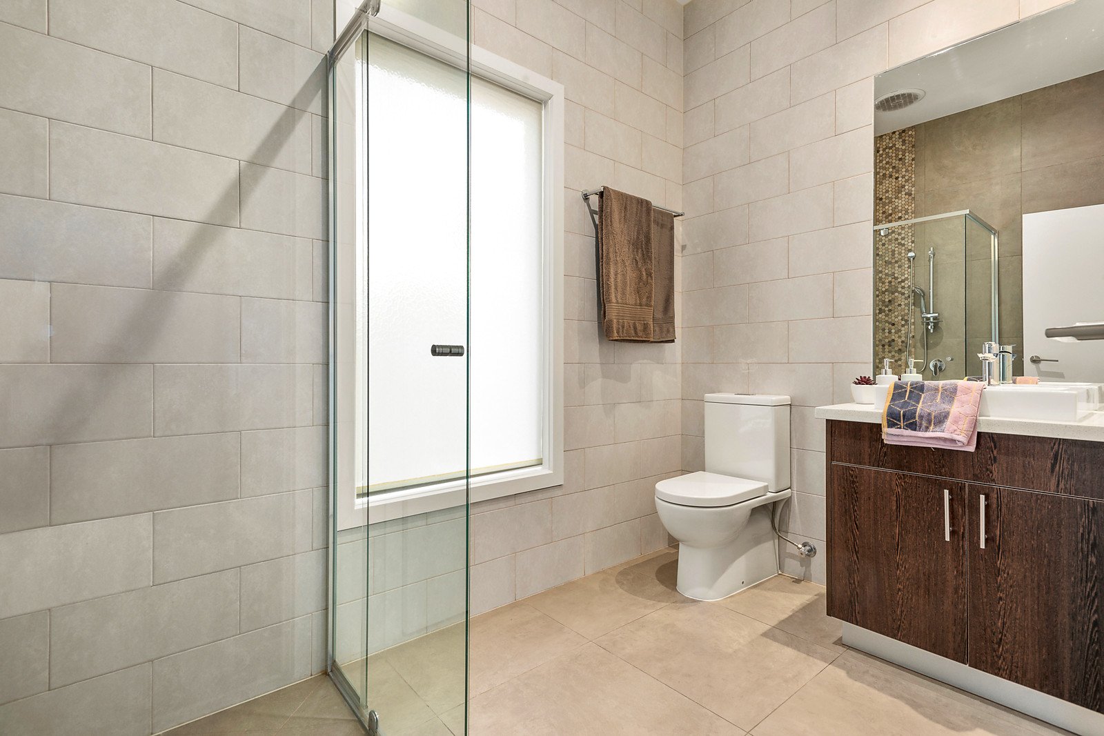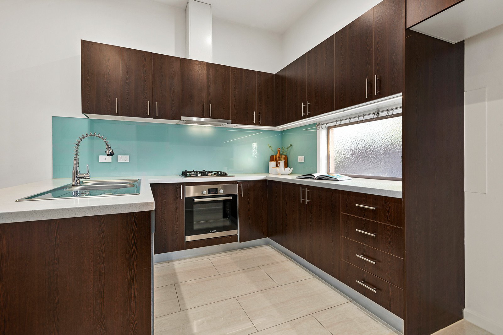 Northern light streams through the generous living and dining room served by a gourmet Bosch kitchen featuring stone benches. The living area opens out to a wide north-facing private terrace and easily maintained garden. The light-filled main bedroom with ample built in robes and a chic en suite is complemented by a second double bedrooms and stylish bathroom. On the lower level there are two additional bedrooms and a third bathroom.