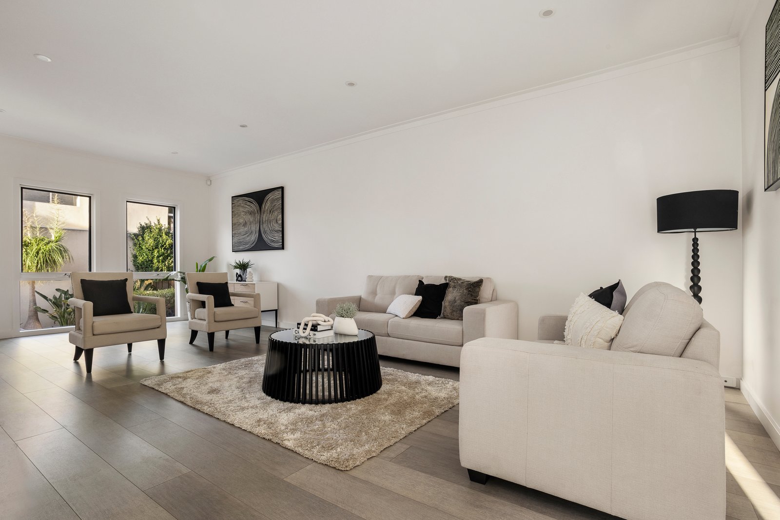 An instantly appealing cream rendered façade introduces a spacious, light-filled interior featuring wide engineered timber flooring through a generous lower level living and dining room. Leading to a family living and or dining area incorporating a sleek kitchen equipped with 2Pac cabinetry, stone benchtops and prestige Miele appliances with adjacent laundry and powder room. Flowing through sliding doors to a full-width deck and easy care landscaped garden – perfect for alfresco relaxation, dining or indoor/outdoor entertaining. Whilst upstairs benefits from the flexibility of four bedrooms, two with ensuites plus a spa bath family bathroom. Other features include a secure alarm system, ducted heating and cooling, walk in and built-in robes in all bedrooms, freshly painted and new carpets, sparkling bathrooms, Asko drying cabinet in laundry, and auto security gates plus a remote double garage/storage with secure internal entry and rear courtyard access.