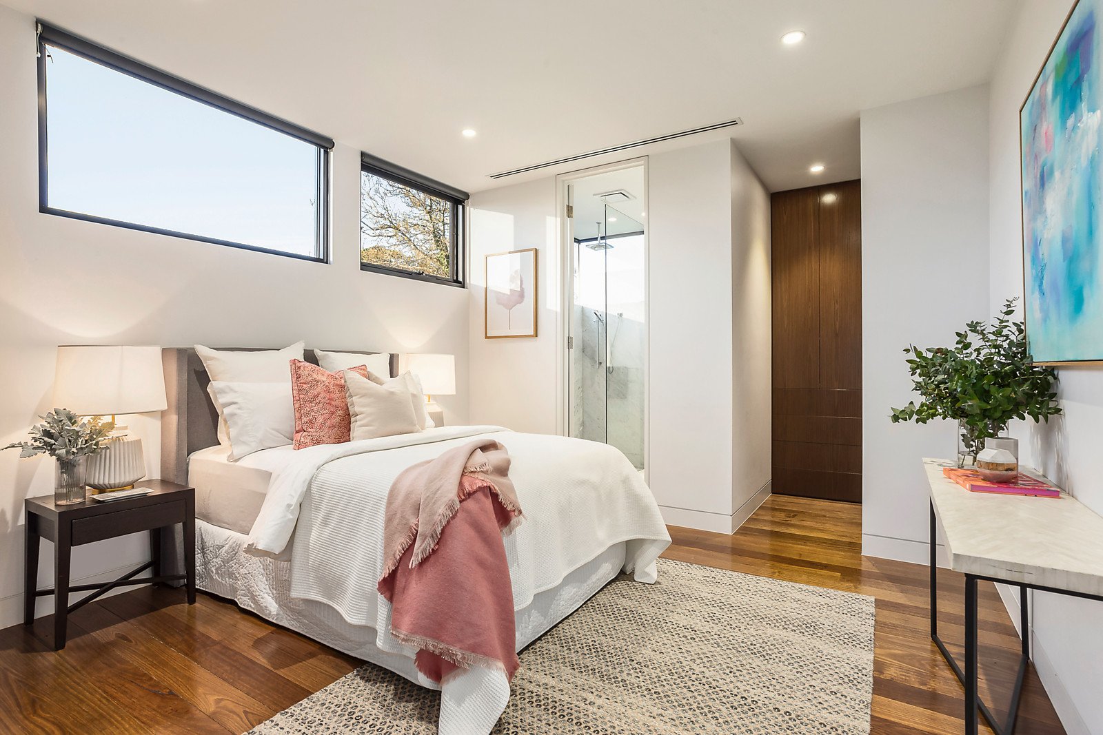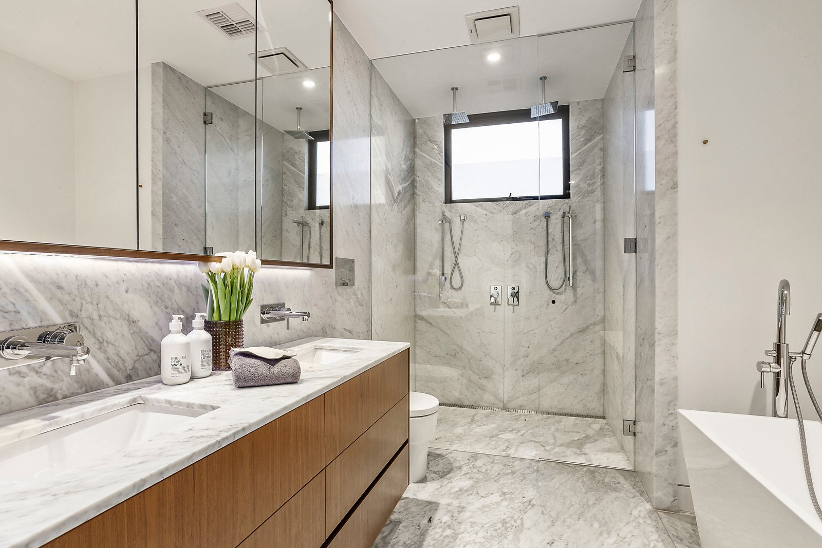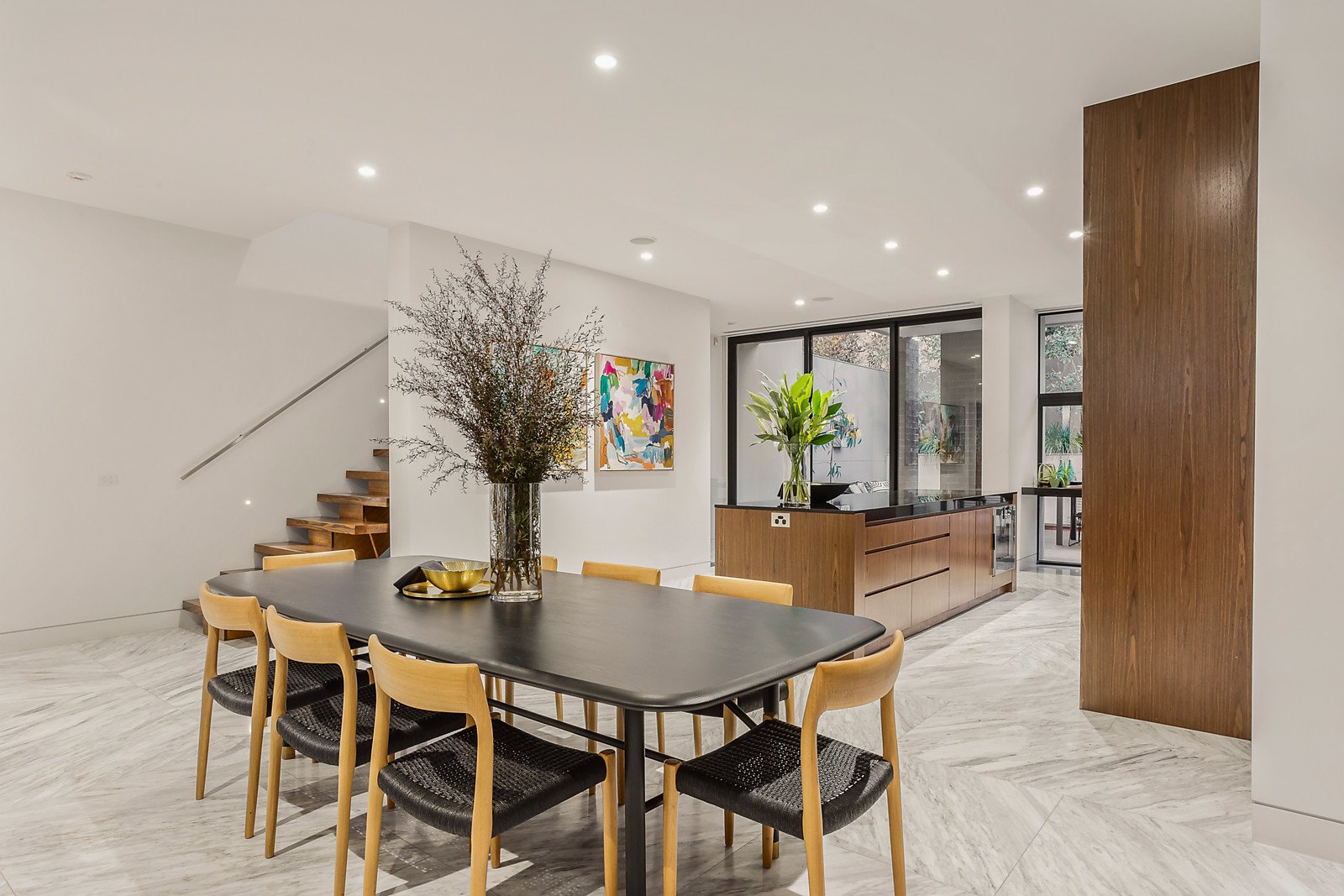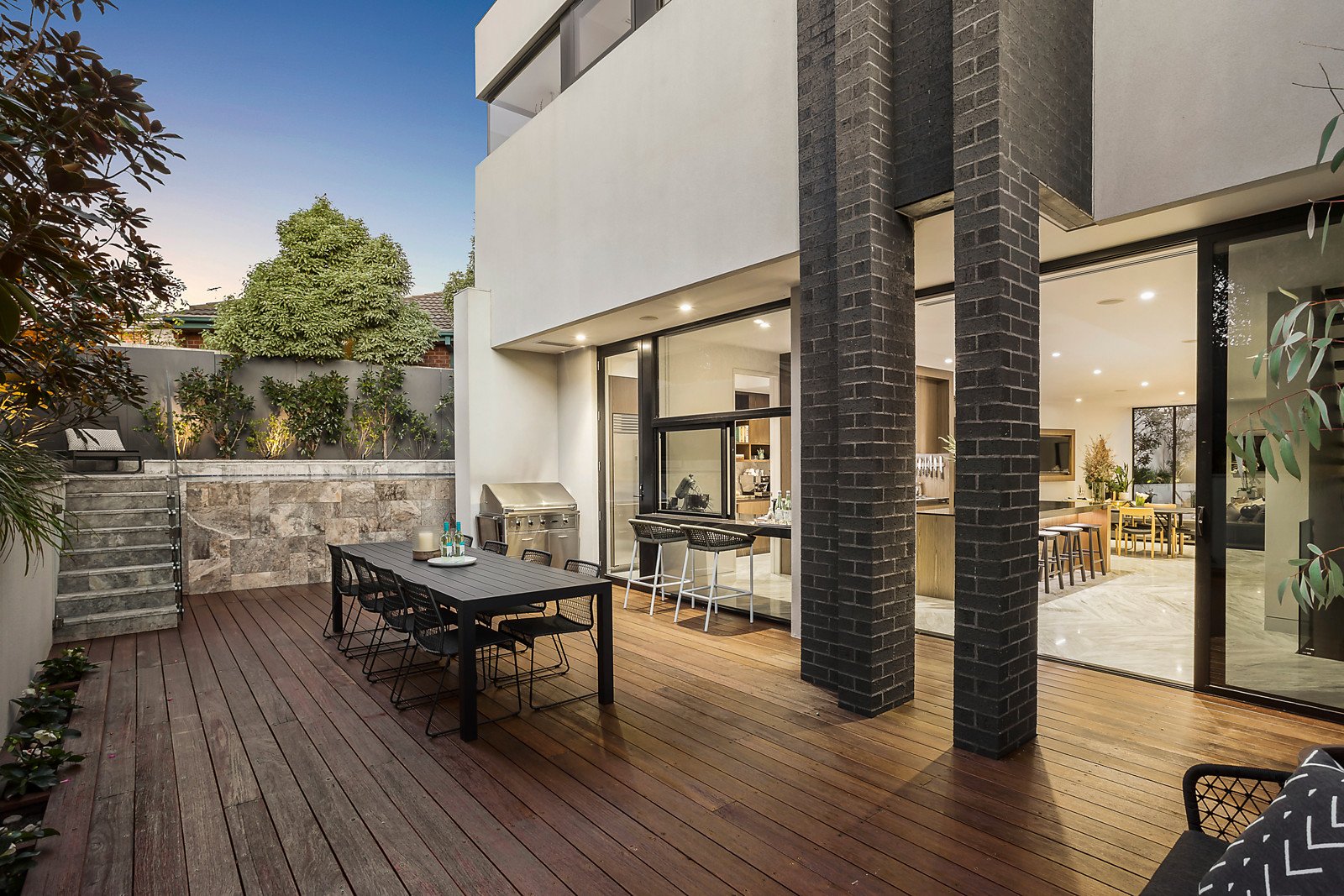 The incomparable quality, premium finishes and exceptional proportions that define this architecturally striking like new contemporary residence create a luxurious domain that is as breathtakingly beautiful as it is impeccably functional. Serenely set behind a high walled private landscaped forecourt, an impactful first impression is created by the spectacular proportions, lavish Carrara marble floors and bespoke timber joinery throughout the vast open plan living and dining room. Appointed with a stunning built in bar and deluxe top of the range kitchen boasting a full suite of Gaggenau appliances, integrated Sub Zero fridge/freezer, black granite benches and impressive butler's pantry, there is even a Gaggenau cryovac drawer. The living spaces connect to the private north-facing decked garden through glass sliders and a servery window. Surrounded by landscaped greenery and featuring a picturesque heated wet-edge pool, it is ideal venue for alfresco dining and entertaining. Floating timber stairs lead up to two gorgeous bedrooms with marble ensuites and walk in robes and an opulent main bedroom with walk in robes and a designer marble ensuite with bath and double shower. On the basement level there is a sensational fitted home theatre, laundry with Zug steamer/refresher and a 4-car garage. Literally metres from Gardiner's Creek, East Malvern station, schools, shops and freeway access, rarely is a home so packed with luxuries. Additional features include alarm, video intercom, CCTV, underfloor heating, RC/air-conditioning, remote blinds upstairs, ducted vacuum, powder-room, surround sound inside and out and irrigation.