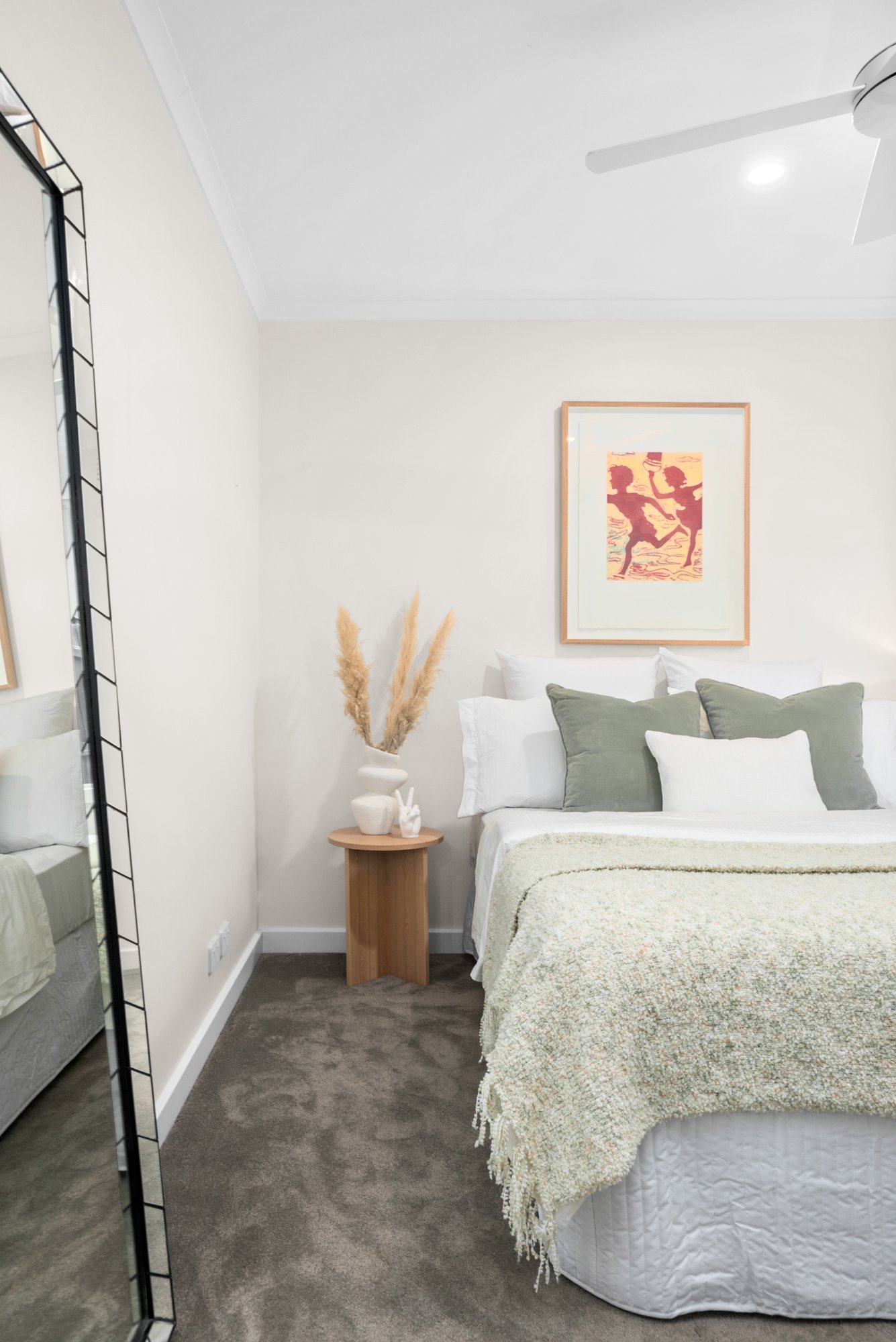 A gorgeous landscaped introduction makes way for a series of light-filled spaces within. Two spacious bedrooms feature built-in robes and the central bathroom is both stylish and practical, beautifully appointed with fitted cabinetry. A wonderful flow creates harmony through the open-plan spaces, with designated zones for dining and relaxing, complemented by a beautifully equipped kitchen with Bosch oven, integrated dishwasher and gleaming stone benchtops. Step outside onto the smart timber deck and appreciate the tranquil retreat provided by the secluded, west-facing rear garden.