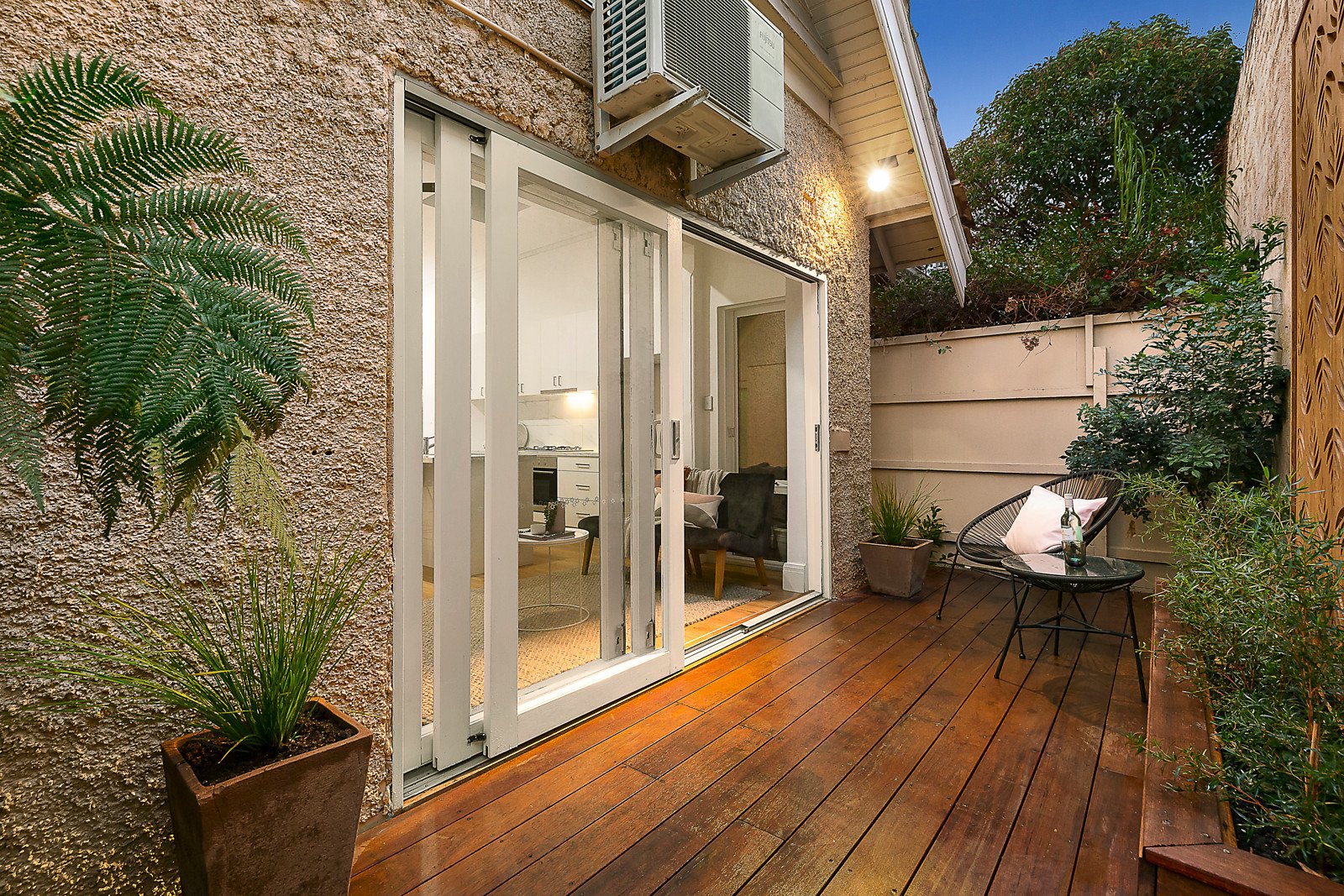 A suite of stainless steel Bellini appliances allow for cooking in gourmet style in a kitchen that has been renovated to supply volumes of premium soft close cabinetry, whilst the bathroom is a fully-tiled domain with a frameless screened shower and the bedroom is enhanced by generous built-in robes. A lavish al fresco flow outdoors to an alluring deck and courtyard create a sense of sanctuary in this home where stunning black ceiling fans and split system heating / cooling ensure year-round enjoyment and where secure intercom entry and a secure parking space on title provide wonderful peace-of-mind.