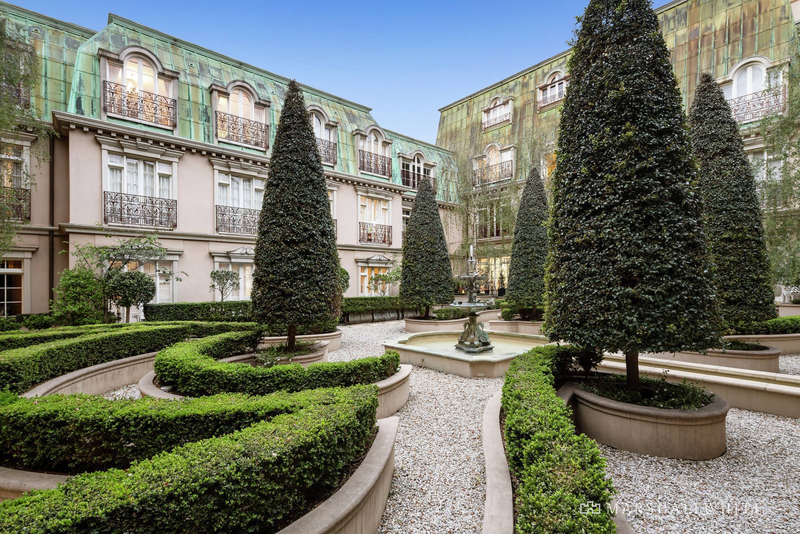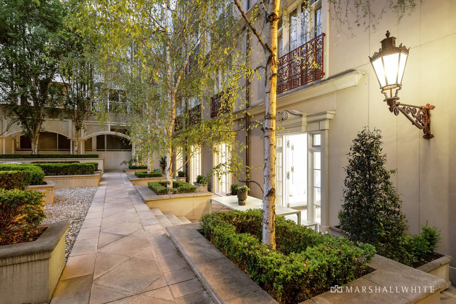 From the magnificent exterior to the manicured parterre gardens and authentic French inspired interiors, this beautiful ground level residence instantly transports you from the edge of Toorak Village to a Parisian Chateau.