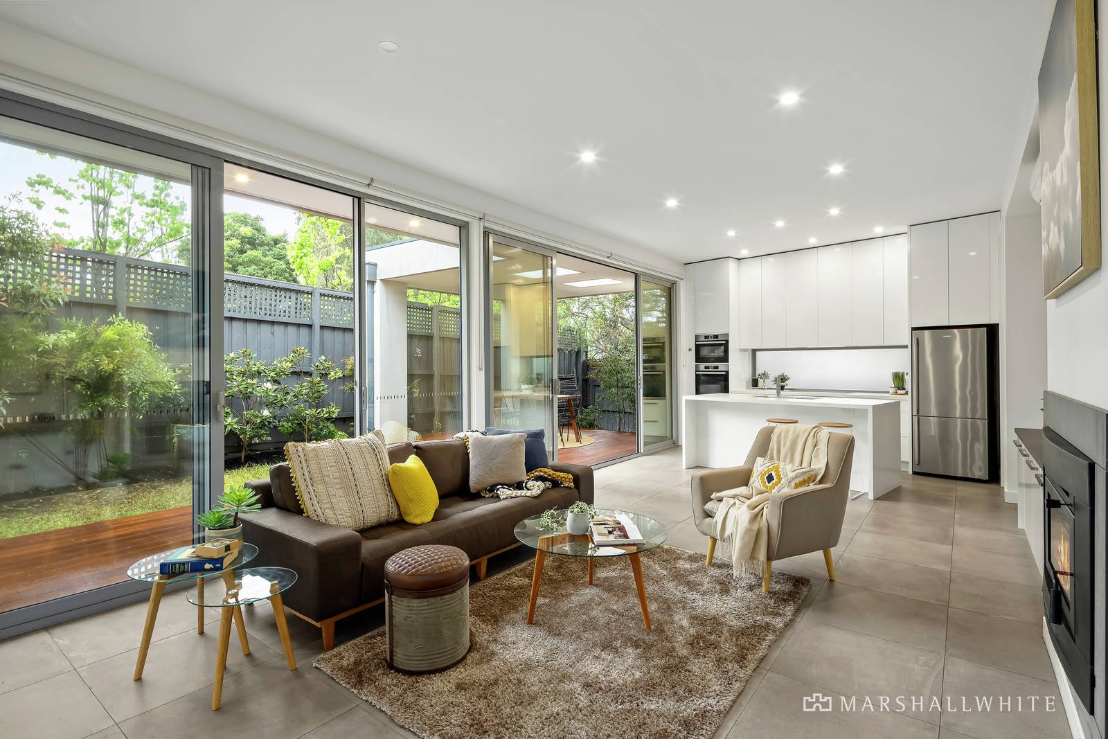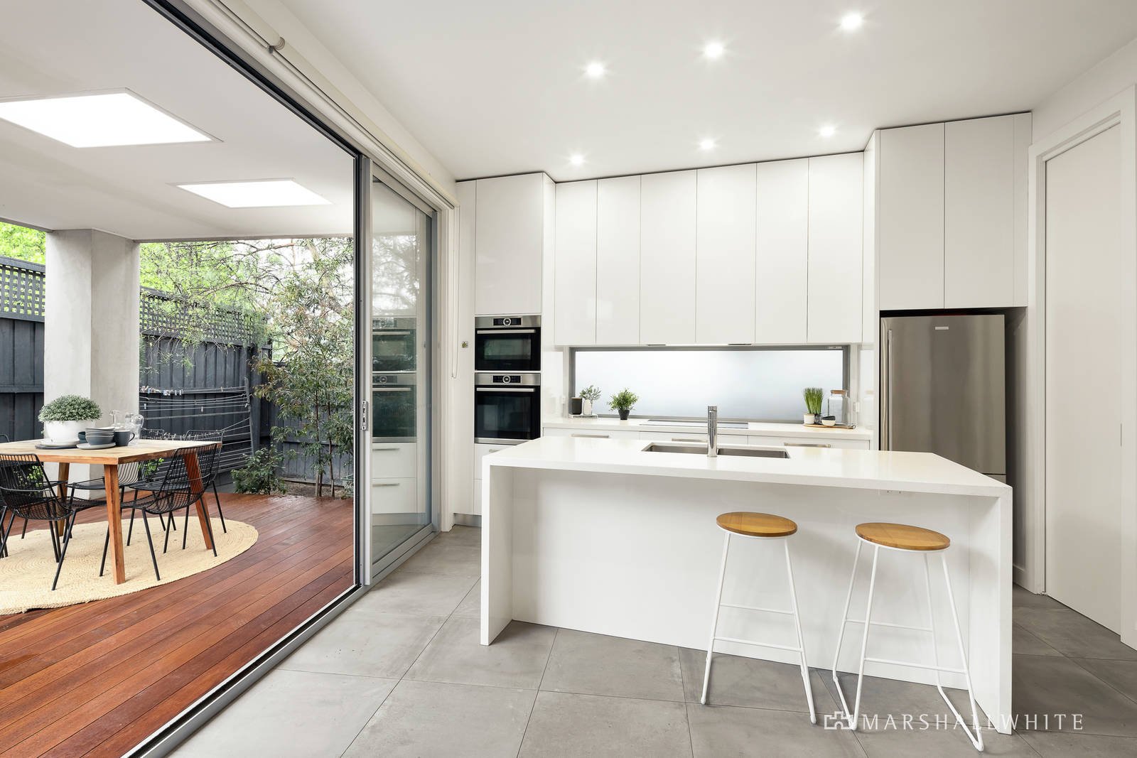 Featured in Sustainable House Day in 2015, the intelligent design featuring double glazing, full insulation and heat pump hot water has resulted in low electricity and no gas bills. Streaming with natural light throughout, large stone tiles flow through the entrance hall to a spacious fitted home office, stylish bathroom and a fabulous media room or retreat. The expansive open plan living and dining room with a wood fire heater and gourmet kitchen boasting Bosch appliances, induction cooktop and stone benches open to the private north-facing garden with a large undercover al fresco dining deck. Upstairs, the main bedroom with lavish en suite, walk in robe and balcony is accompanied by two additional bedrooms with robes and a chic bathroom.