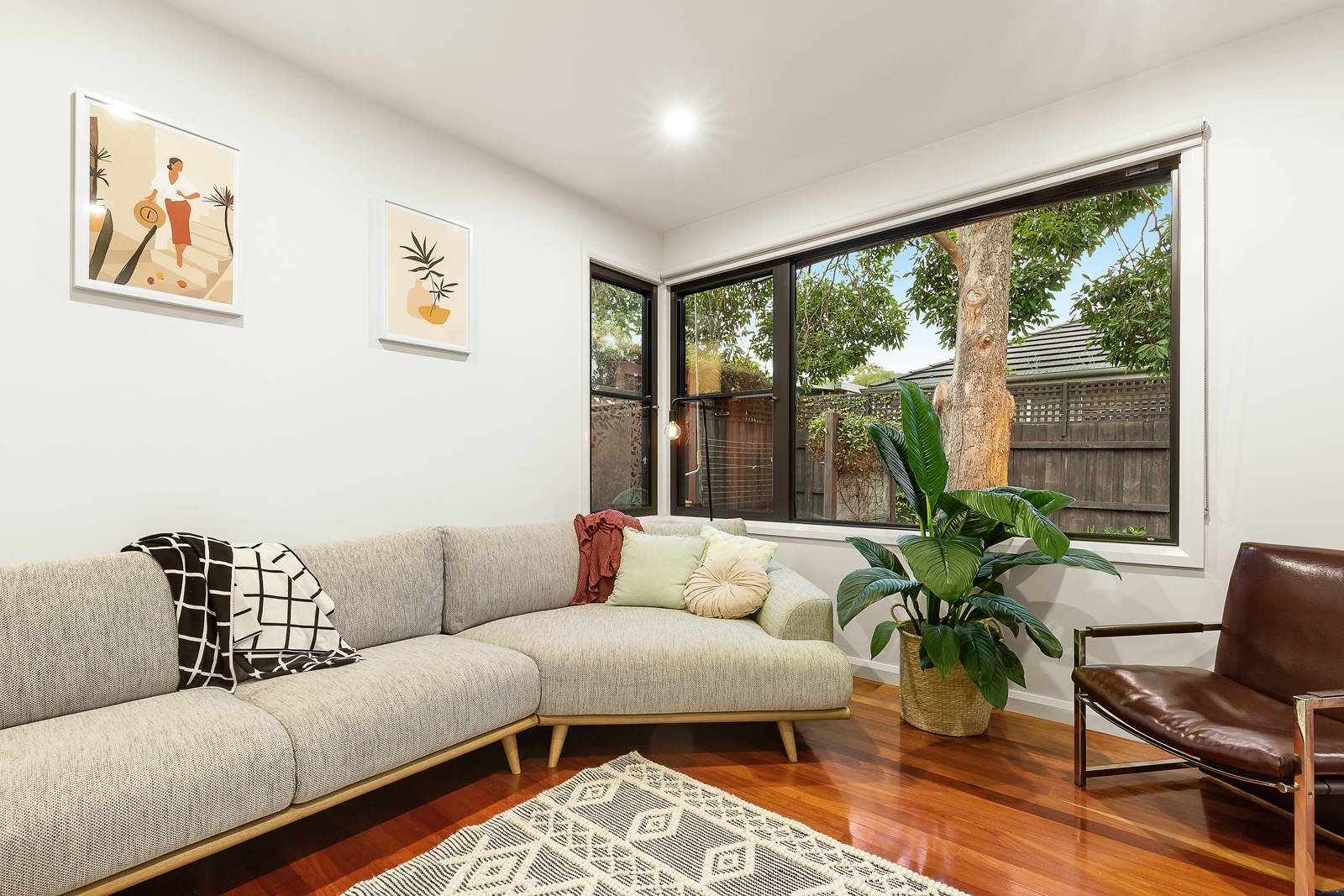 Serene, sophisticated and secure, this elegant single level town residence presents a stylish contemporary haven with sleek finishes and spacious proportions. Set at the rear of a boutique block of just three residences for maximum peace and privacy, soaring high ceilings with skylights saturate the home with natural light throughout, while a versatile floorplan and enticing outdoor entertaining contribute additional lifestyle appeal. A sunny open plan living and dining area showcases timber floors and a bright kitchen appointed with granite benchtops and a suite of Miele appliances, opening out to a large deck shaded by a tree for tranquil alfresco dining and entertaining. Accommodation encompasses two spacious bedrooms with robes, including a generous main with a second private courtyard, walk in robes and ensuite with a double stone vanity and shower. A second bathroom, flexible playroom or home office and single garage with automatic door complete the home. Situated in a desirable pocket for golf lovers, with easy access to an array of lifestyle amenities including Beaumaris North Primary School, Balcombe Road shops and cafes, lush parks, Mentone train station and the bay.