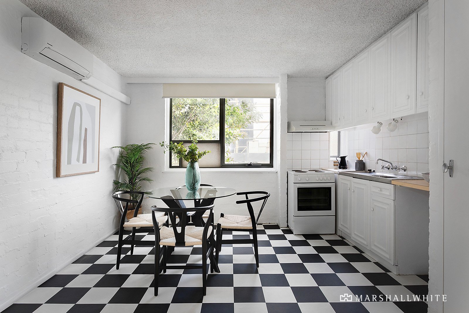 With minimal fuss, the apartment is ready to be enjoyed while offering scope to deliver the rewards of a quick cosmetic renewal, should you choose that path. Accessed securely via intercom entry, it reveals a bright kitchen / dining / living as well as a bedroom in which large walk-through robes offer excellent storage. Meanwhile, split system heating and air conditioning offer year-round comfort.