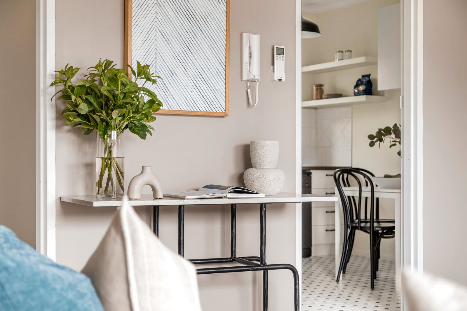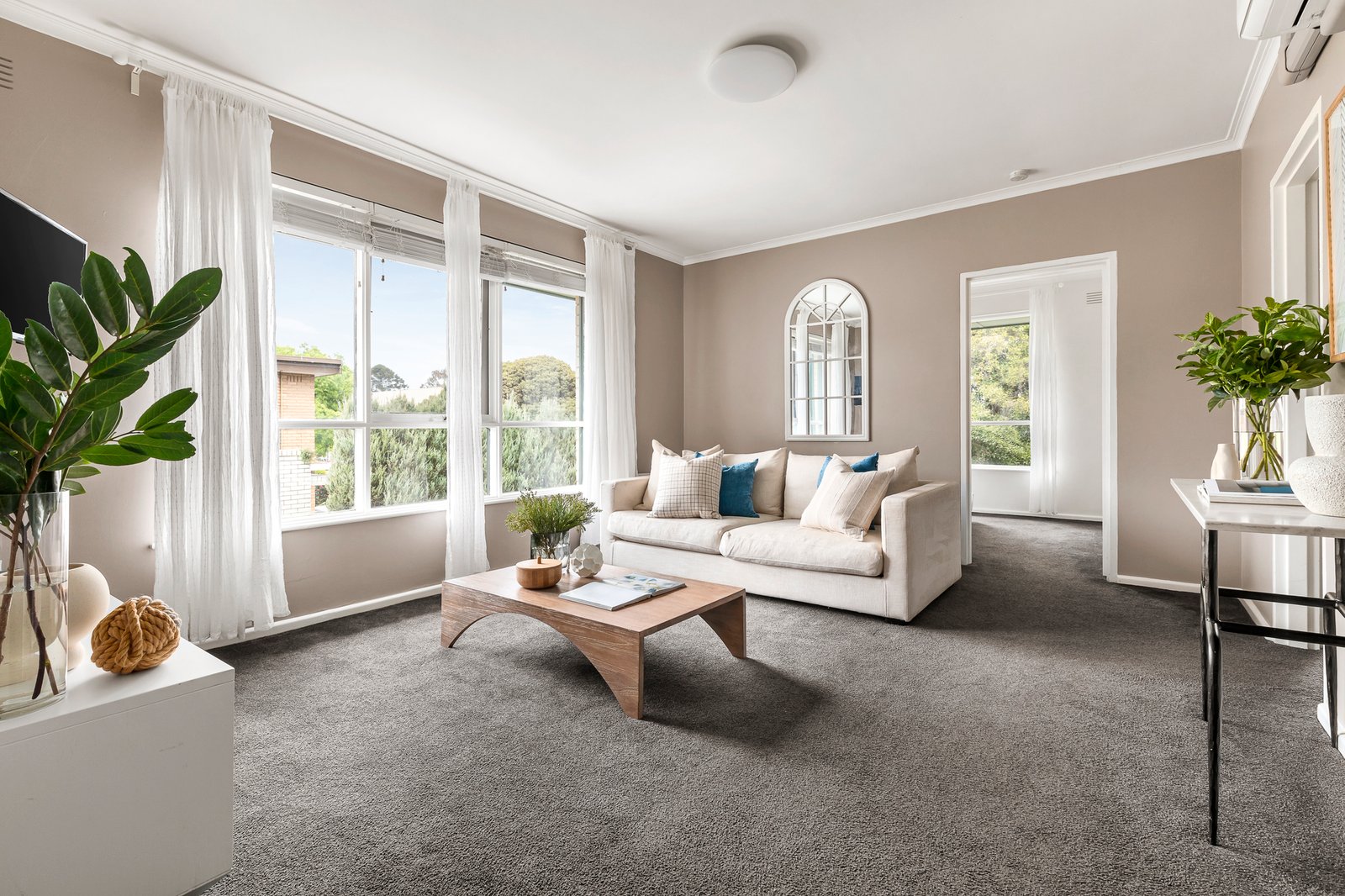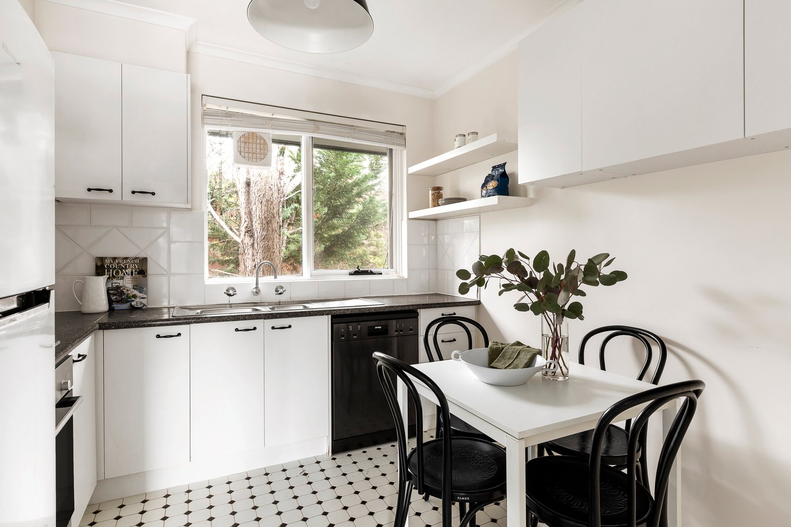 Accessed via secure intercom entry and electronic gates, this bright and airy first floor / top floor abode reveals an updated yet heritage-styled kitchen / meals with modern appliances and a generous, semi-attached living room that is carpeted. Enjoying leafy treetop outlooks all around, the home’s bedrooms have each been completed with generous built-in robe storage and plush carpets to match those in the living areas, plus there is a contemporary black-and-white styled bathroom / laundry that is perfectly ‘on trend’, as well as a prized undercover parking space.