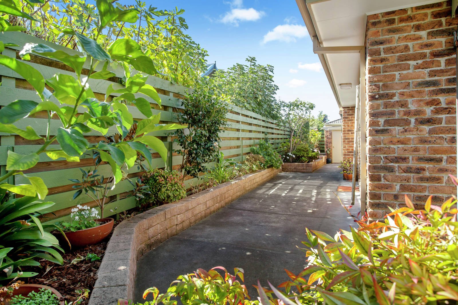 Further exploration will unveil two additional bedrooms (BIRs) serviced by a main bathroom with separate WC, and a spacious master bedroom (WIR) with generous ensuite. Neatly wrapping the home in an effortless colour and life is an enchanting garden, offering intimate vignettes of foliage and delight.