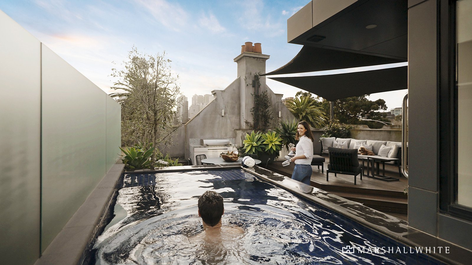Behind a classic early 1900s façade a total transformation has taken place creating a superb penthouse apartment. Situated in an exclusive boutique complex of only three, highlighted by breath taking panoramic views across Yarra Park and the City skyline sweeping to the north. To be enjoyed from a 70sqm (approx.) roof-top terrace and garden complete with an azure blue pool and a barbeque kitchen - providing ample open space and privacy to enjoy relaxing alfresco dining and entertaining.
