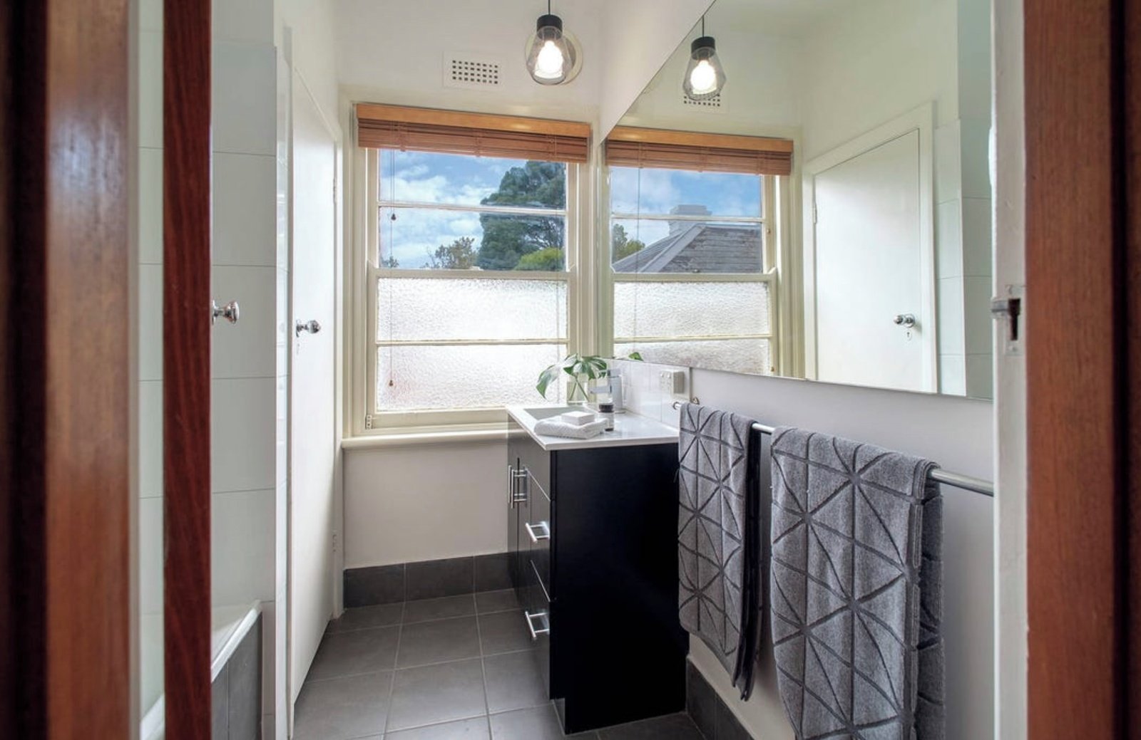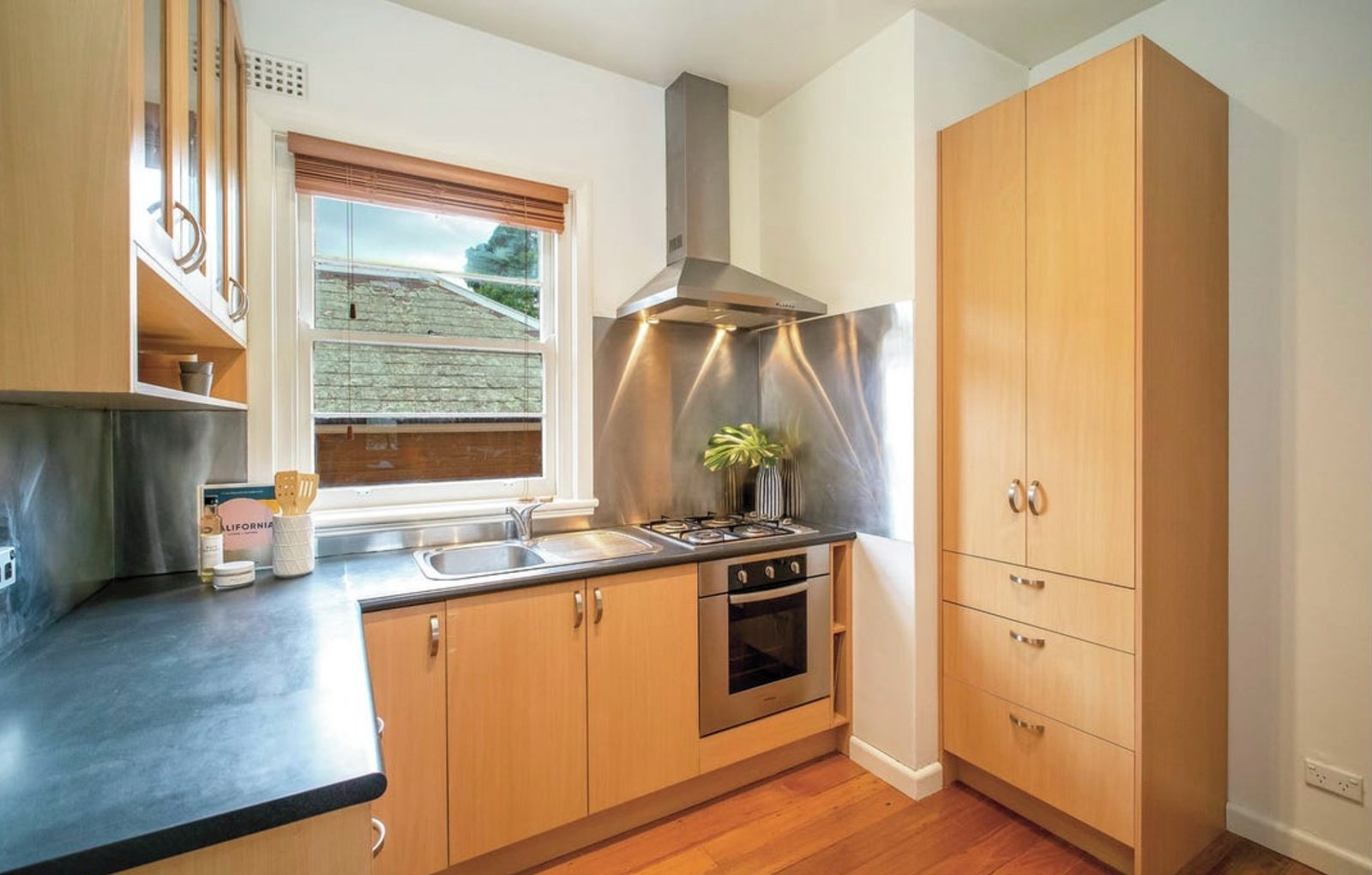 With hardwood flooring, timber skirtings and architraves to complement Deco windows and detail, the home reveals leafy tree-top vistas in all directions which provide year-round greenery and privacy. The kitchen / meals that has been up-dated for durability with timber-tone cabinetry and stainless steel appliances. Meanwhile, the lounge / dining has new split system heating/cooling for year-round comfort, additional hallway storage is a wonderful convenience, as is a shared laundry (space for your own machine), while a large garage with additional storage is a huge drawcard in this vibrant location.