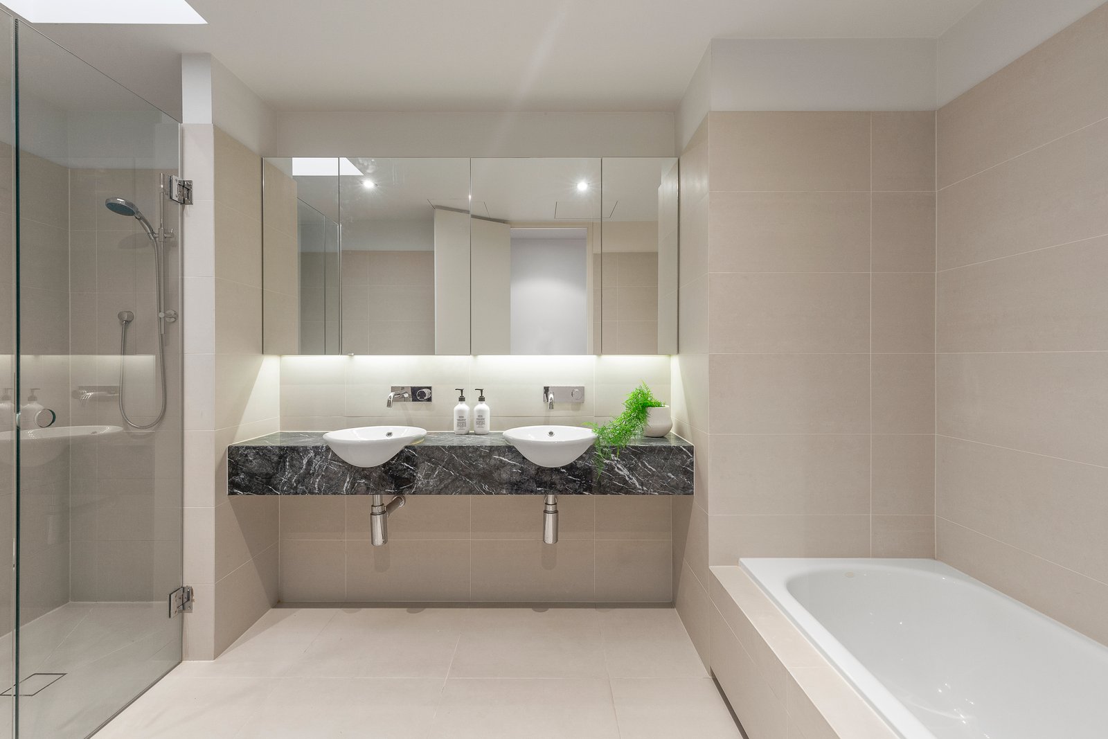 Oversized white tiles accentuate the wonderful sense of light in the spectacular open plan living and dining room with a sublime gourmet Miele kitchen featuring lavish marble benches and breakfast bar at the centre of the room. A balcony at one end is matched by a large private entertaining terrace at the northern end. On the level above there is a generous main bedroom with designer en suite and walk in robe, two additional robed bedrooms, a stylish bathroom and central retreat. On the ground level, an expansive second living room is ideal as a media room, convenient home office or 4th bedroom.