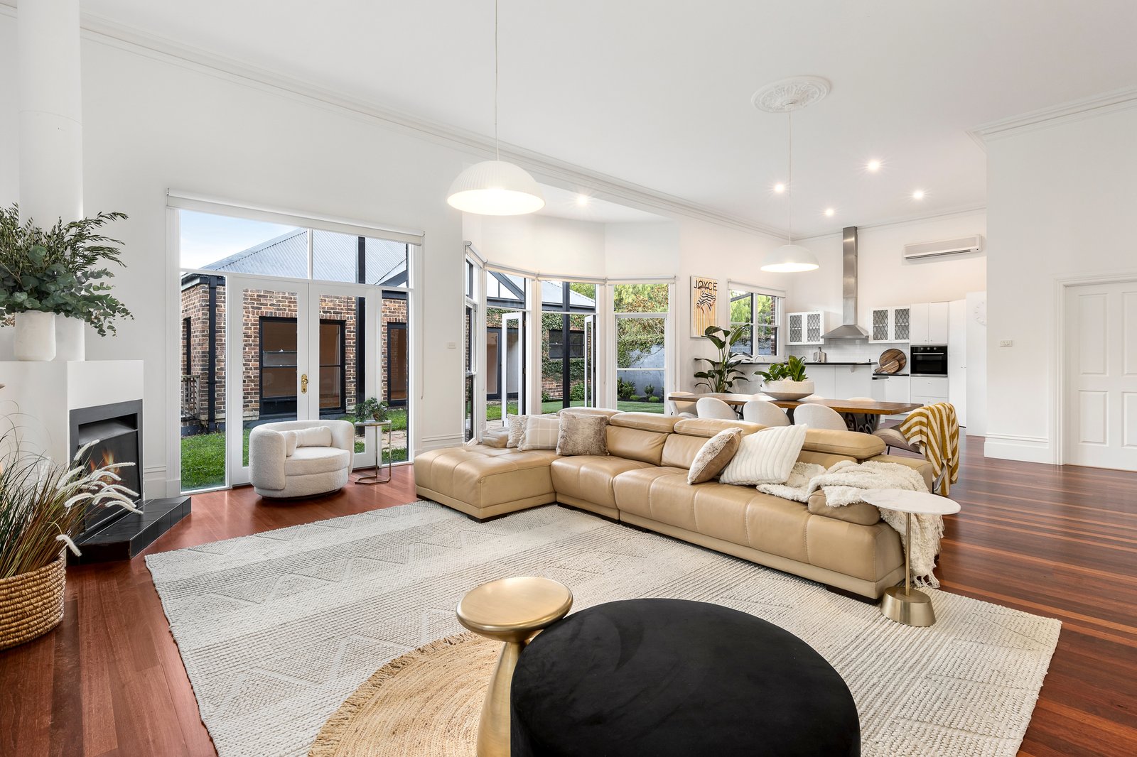 It will not be hard to be instantly captivated by the crisp white façade trimmed with black, highlighting this stand out classic double fronted Victorian home c1890. Situated in an iconic row of similar Victorian homes in a quiet sought-after pocket of Hawthorn. Refurbishments to the previously renovated and extended interior have delivered a sublime living environment; blending several period attributes including a slate roof, iron lacework verandah, coloured leadlight glass and high ceilings with roses. Combined with the generous proportions typical of its era and light-filled living spaces in keeping with today’s contemporary lifestyle.
