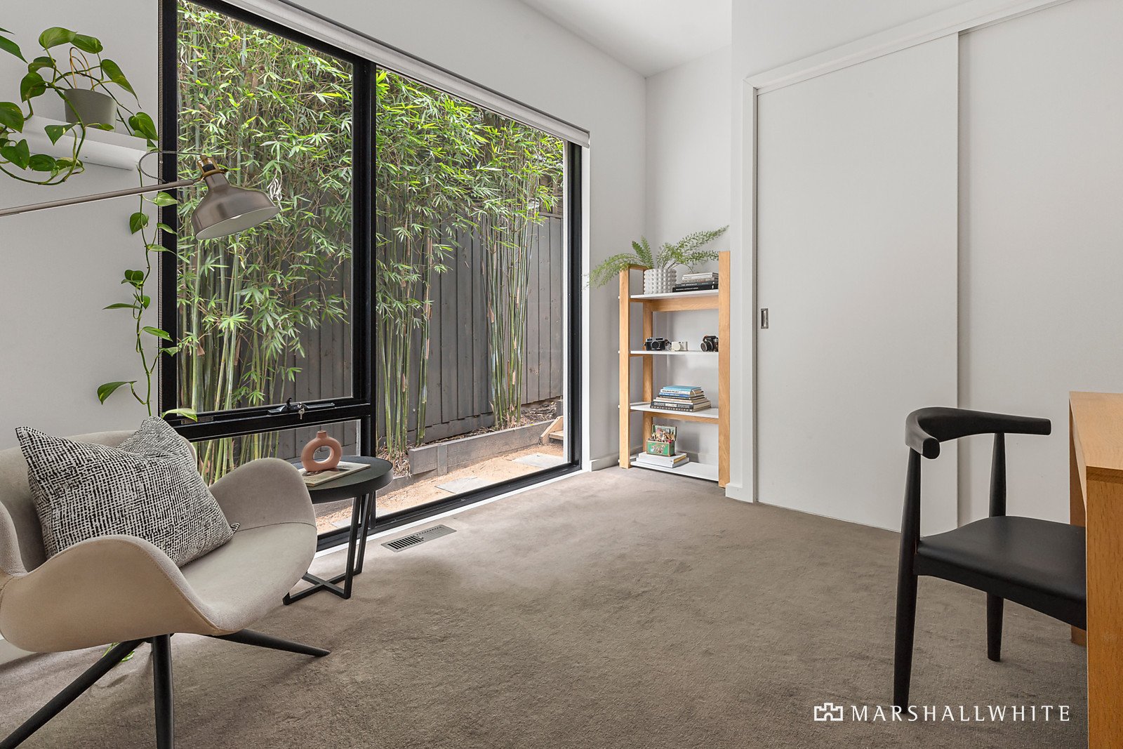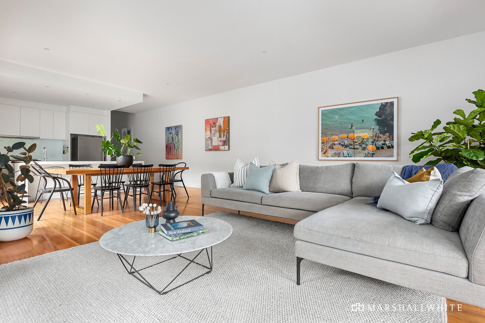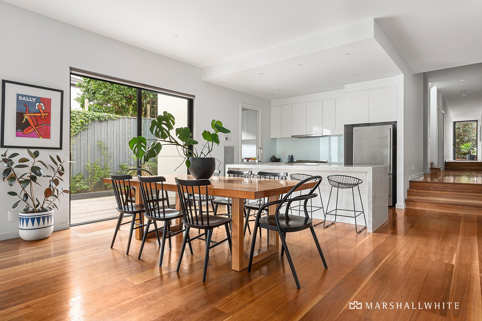 State-of-the-art design brings superb style to one of the best streets in Beaumaris, where you can be living one door from Royal Melbourne Golf Club and loving the tranquil vibe. Four-bedroom three-bathroom retreat is one of the newest homes in this leafy low-traffic lane. It's an exceptional oasis, featuring a light-filled family room opening onto a barbecue deck and hedged garden, a north-facing dining zone with outdoor access, generous upstairs lounge with panoramic leafy views, and two bedrooms on each level. Luxury finishes meet functionality in the marble kitchen with a butler's pantry, Ilve five-burner range, large oven, and island dining bench. The ground-floor main bedroom suite has garden access, a walk-in ward-robe and ensuite, and the fourth bedroom could become your home office. There's the bonus of a second ensuite upstairs as well as a family bathroom. Quality comes to the fore in every space, thanks to custom-made floating cabinetry in the family room, spotted gum timber floors, high ceilings, zoned ducted air conditioning and heating, and plumbed water tank. Everyday living is enhanced with a double garage and onsite parking, a security alarm and family-size laundry. Experience the laidback lifestyle that comes with a backdrop of coastal landscaping and a streetscape full of birdsong and native vegetation. The second hole on Royal Melbourne's east course is footsteps away, families will appreciate living around the corner from Beaumaris Secondary College and Balcombe Park Reserve, and it's an easy walk to Concourse and Balcombe Road shops, cafes, and the beach.