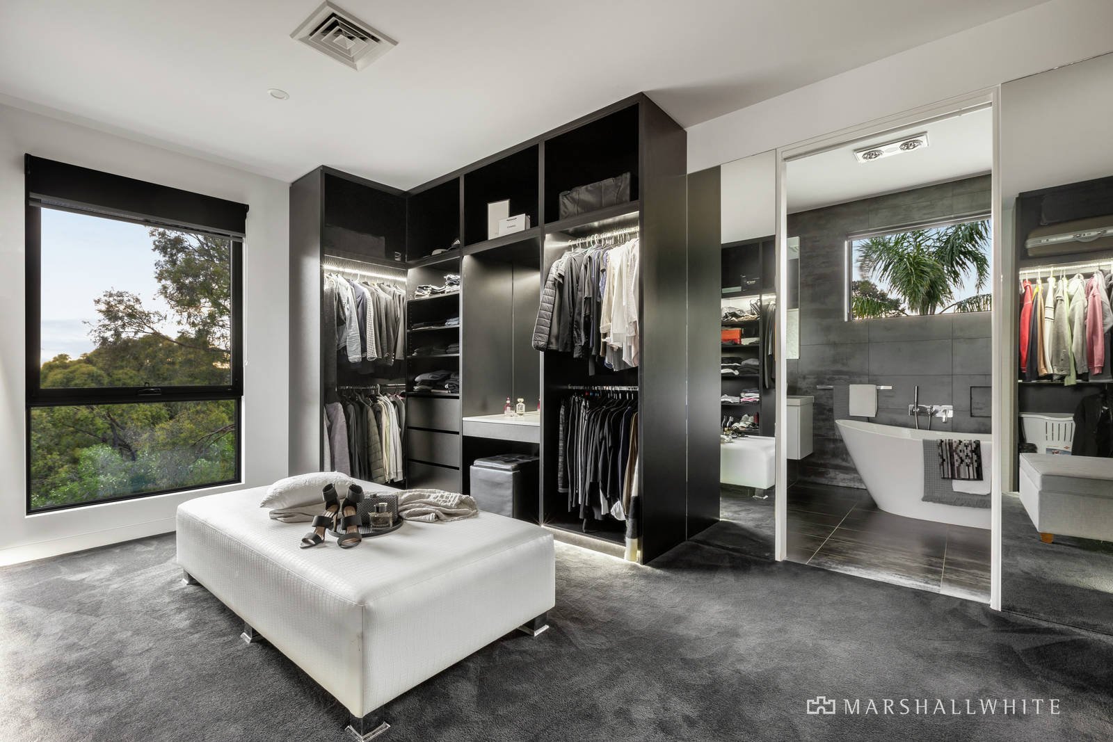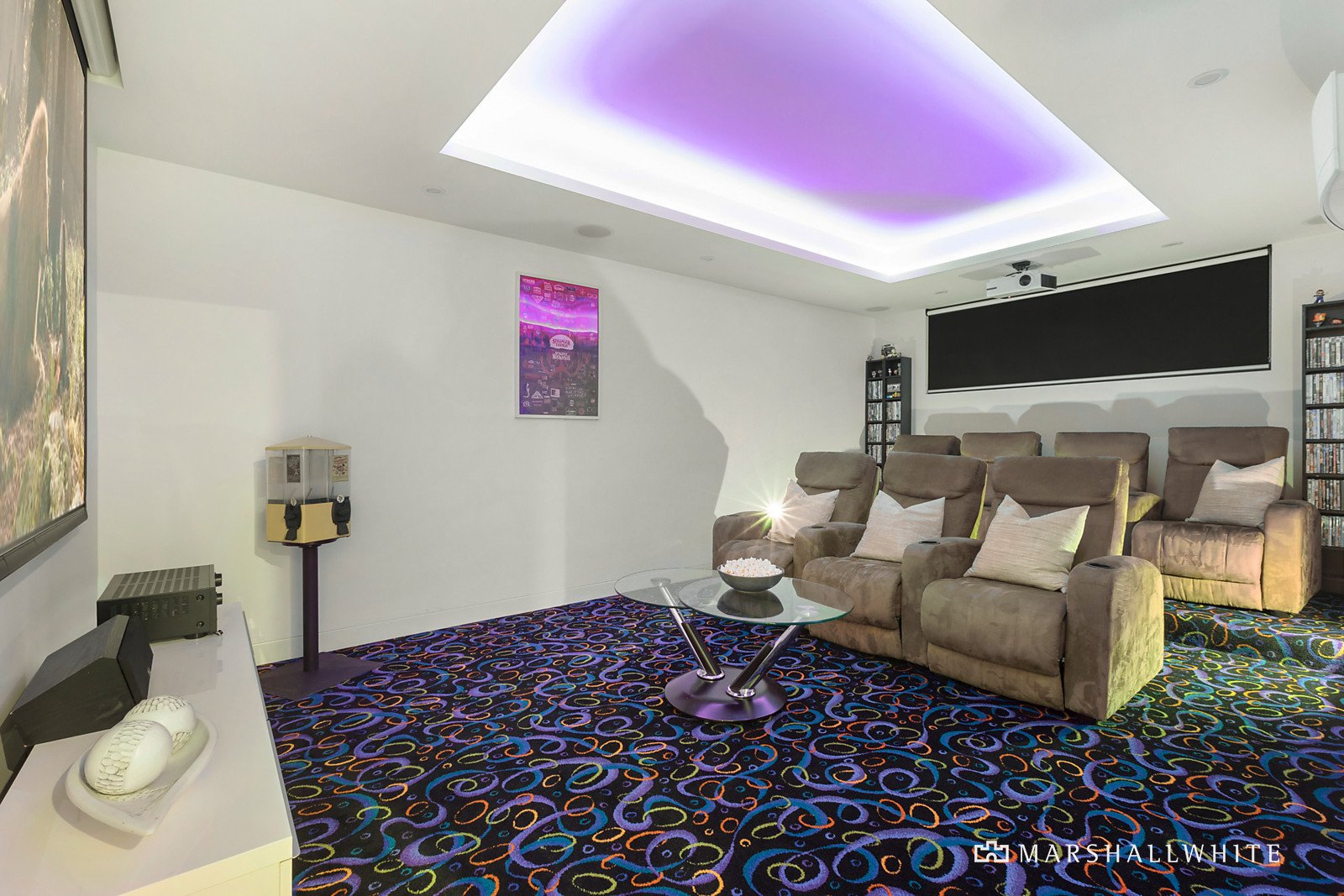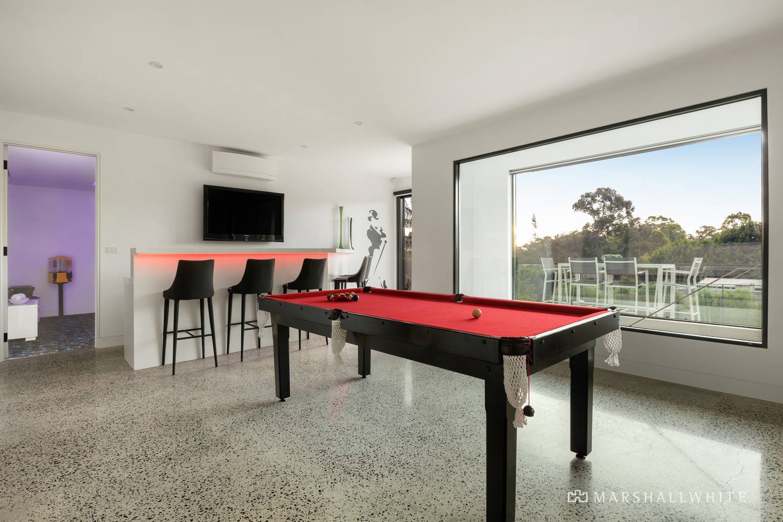 Intelligently designed, a children's wing comprises a pair of bedrooms - each with walk-in robes and designer ensuites - set adjacent to a retreat/living area. Removed from the children's area, a more adult-oriented rumpus room highlights a built-in bar and opens to the terrace that unites the home. Further, a plush home cinema is perfect for family movie nights.