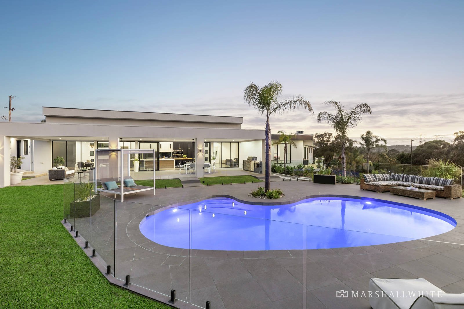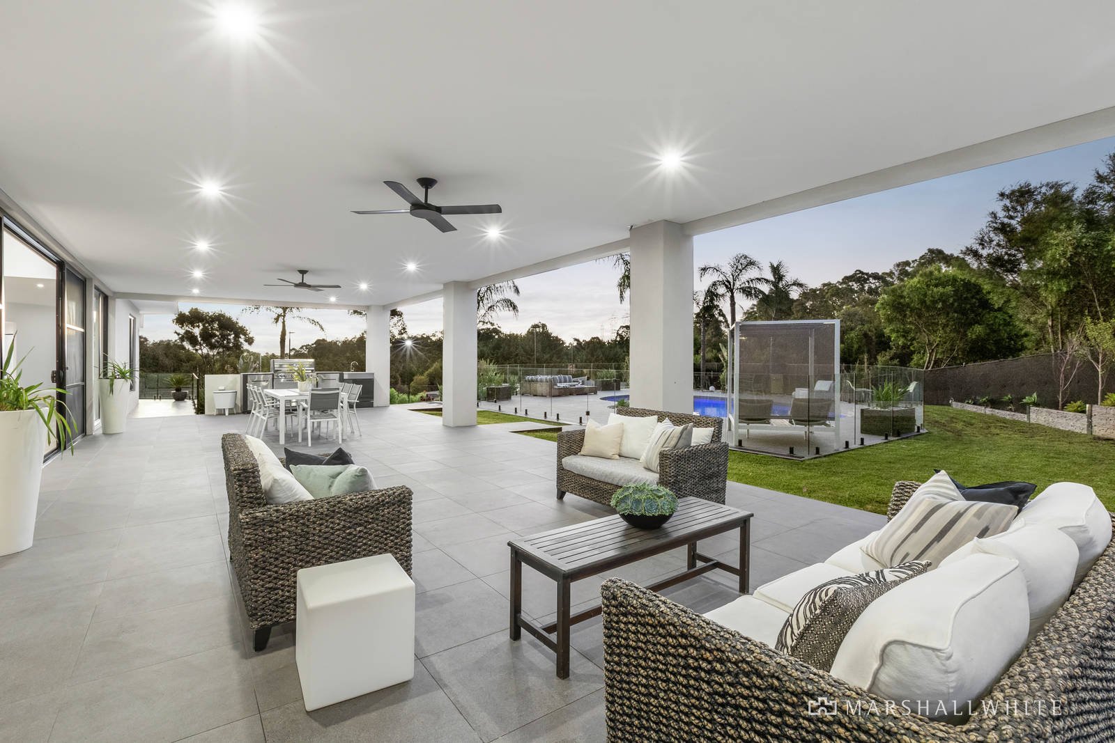 Breathtaking in its scope, impeccable in its construction and presented flawlessly in as-new condition, this spectacularly sized, five-bedroom and six-bathroom residence has been crafted with the proudest of alfresco family entertainers in mind. Evoking all the indulgence of a luxury resort, with a sun-drawing swimming pool, a poolside bar, tennis court and a firepit area, all under the gaze of a sweeping wrap-around terrace, this is a venue your lucky guests will never want to leave.