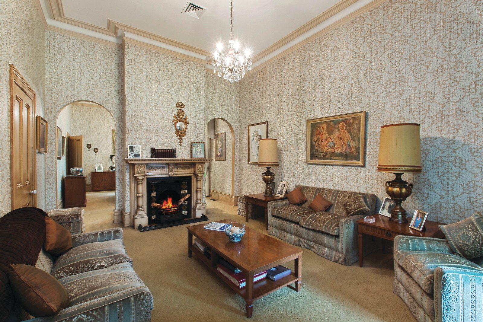 A traditional façade framed by a tessellated verandah introduces a magnificent arched central hall, gracious sitting room with open fireplace, formal dining room with marble open fireplace and a study or 4th bedroom with open fireplace. A bar room with built in bar and reading alcove with open fireplace precede a well equipped kitchen and light-filled living room opening to the northeast private garden. The generous downstairs main bedroom and bathroom is matched upstairs by a children's zone comprising two additional bedrooms with built in robes, a bathroom and retreat.