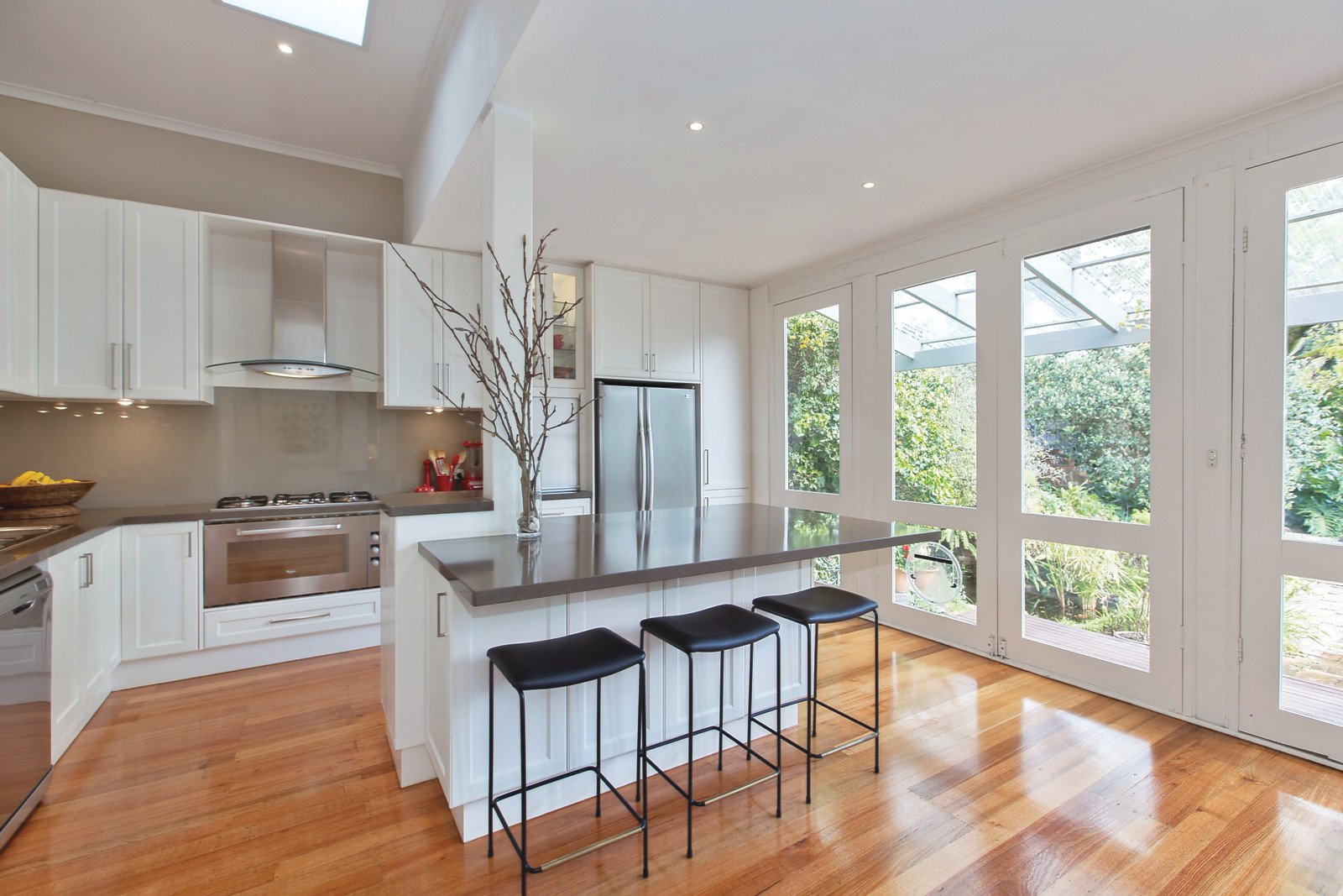 A broad return verandah creates an irresistible first impression confirmed inside by timber floors, high ceilings and fretwork in the L-shaped hallway, impressively proportioned sitting room and formal dining room. Streaming with natural light, the living room and stunning gourmet stone kitchen open out to a deep private leafy northwest garden with pond and freestanding studio or 5th bedroom with 3rd bathroom. The three downstairs bedrooms (two with open fires) and stylish travertine bathroom are complemented upstairs by a fabulous main bedroom with chic en-suite, huge versatile walk in robe and sunny balcony enjoying city views.