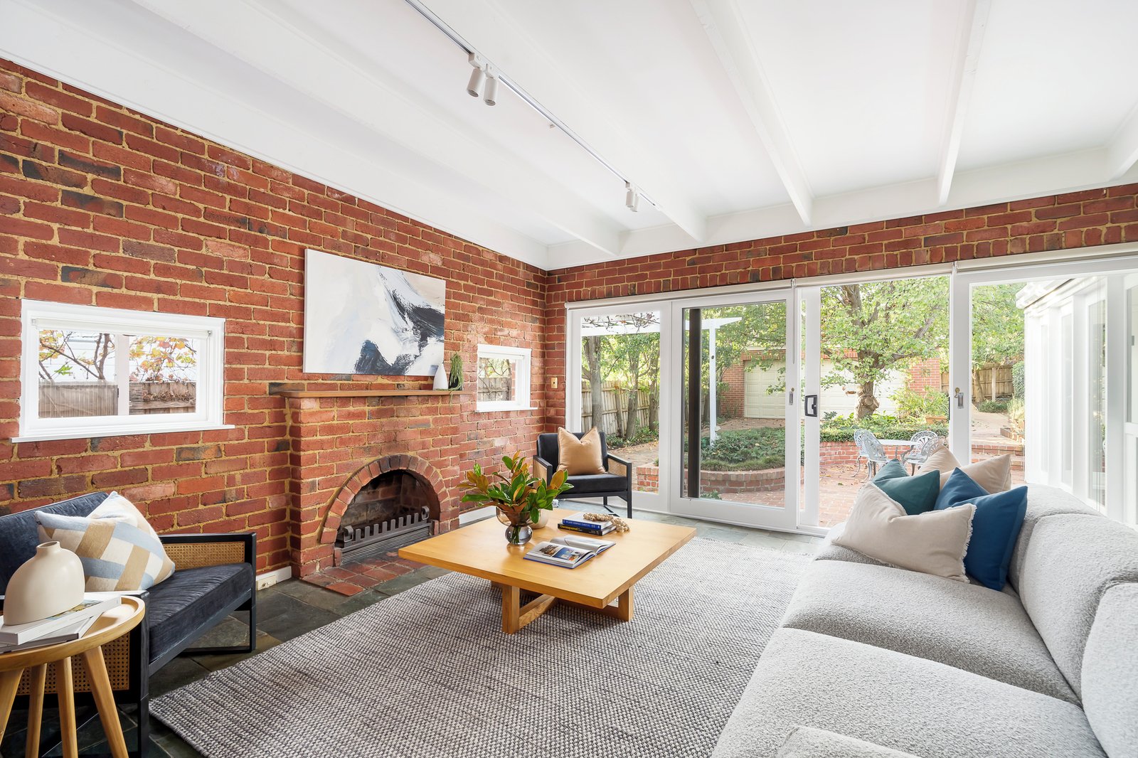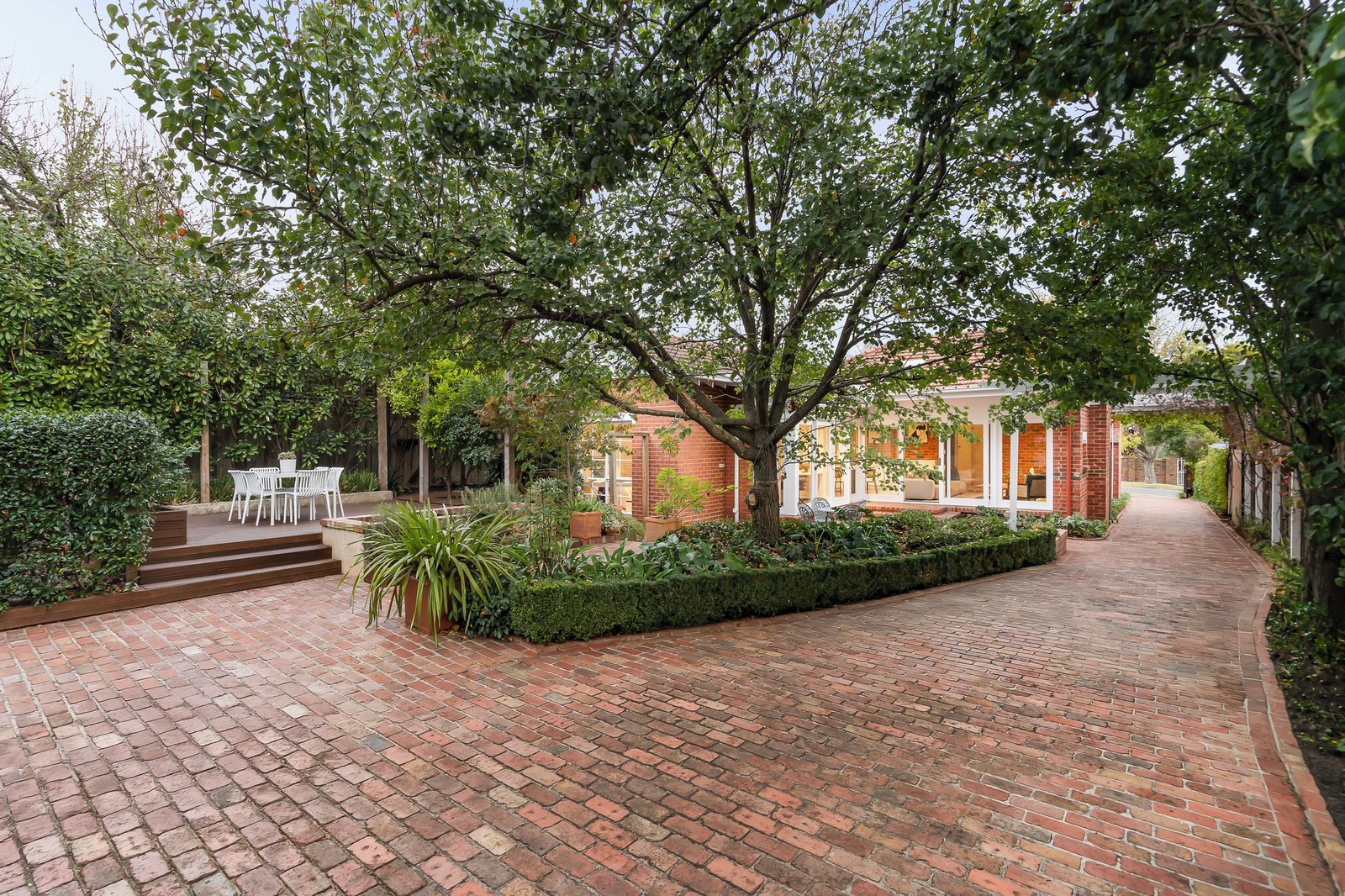 The interior boasts elegant period features, including original Art Deco ceilings and rich Baltic pine floorboards that flow from the entrance hall through to a formal sitting room and adjoining dining room. Accommodation comprises four well-zoned bedrooms—one at the front alongside a fully tiled bathroom, and three positioned at the rear, serviced by a second bathroom combined with a laundry. A stylish, well-appointed kitchen features CaesarStone benchtops and premium appliances by Miele, Bosch and Haier. It flows to an expansive family living area with an adjoining study zone; overlooking a deck and a brick-paved alfresco dining and entertaining space. A vine-draped pergola leads to a deep, ornamental garden framed by mature trees and two serene water features—perfect for relaxed outdoor living. Additional features include ducted heating and cooling, a gas log fireplace in the sitting room (ornamental), an open fireplace in the family room (ornamental), a reverse-cycle air conditioner, quality fixtures and fittings, ample storage, landscaped gardens, automated gates, a remote-controlled double garage with storage, and extra off-street parking.