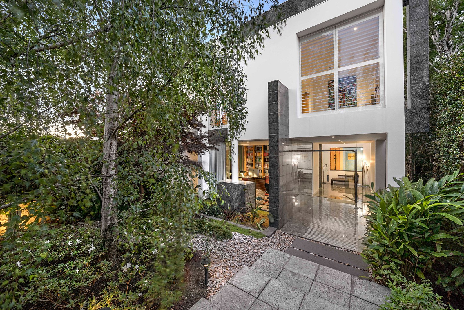 Behind a tranquil Japanese inspired garden, the welcoming entrance hall introduces a refined home office with fireplace, a palatial sitting/entertaining room beneath a soaring double height ceiling and a stunning formal dining area overlooking a gorgeous lily pond and opening to a west-facing private leafy terrace and serene gas/solar-heated pool. An inviting living room with open fireplace is an ideal family room. The sublime black granite gourmet kitchen is appointed with Gaggenau and Miele appliances and is adjacent to a sun-drenched casual dining area. Two staircases ascend to the accommodation level comprising a magnificent main bedroom suite with lavish ensuite, dual walk in robes and a large northwest sun-terrace enjoying city views. There are also three additional bedrooms with stylish ensuites and built in robes.