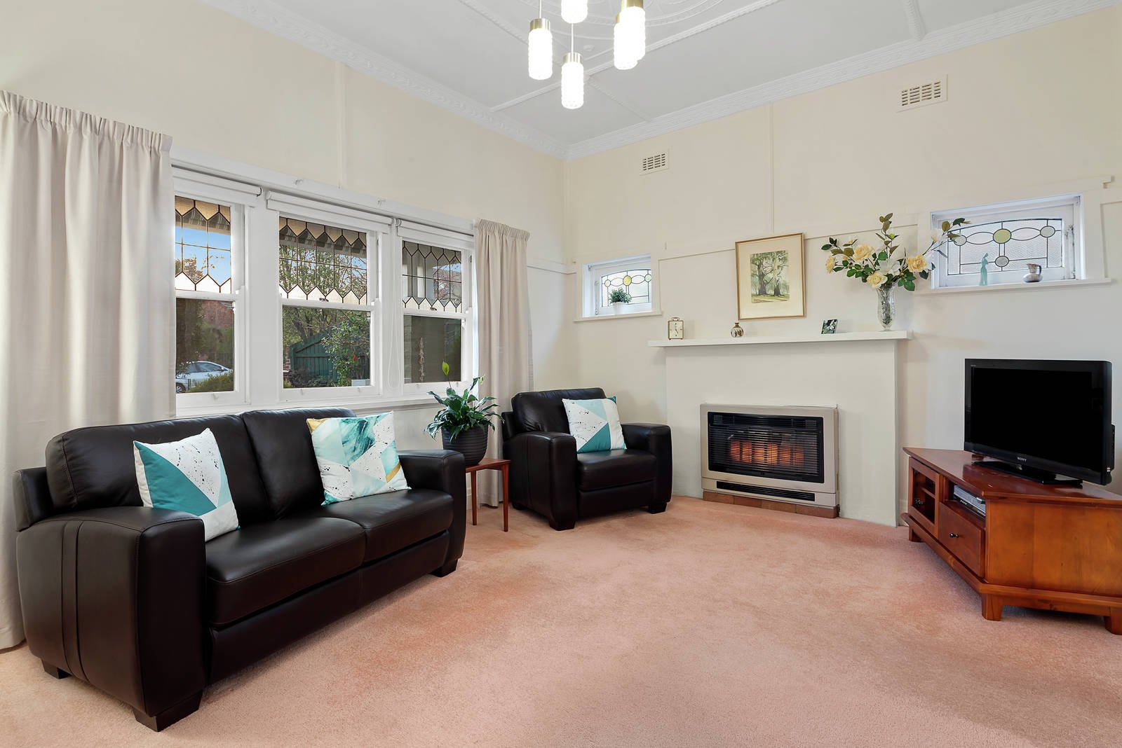 A sun drenched open plan living area opens out to the expansive backyard lined with leafy established trees, complemented by a second formal living area with verdant front garden outlook and ornamental fireplace. The well appointed kitchen features quality appliances including gas cooktop, oven and dishwasher, coupled with a north facing formal dining room. Three spacious bedrooms, two featuring built in robes, are accompanied by a central bathroom. A laundry, separate toilet, secure garage for one car and off street parking for two cars completes the residence.