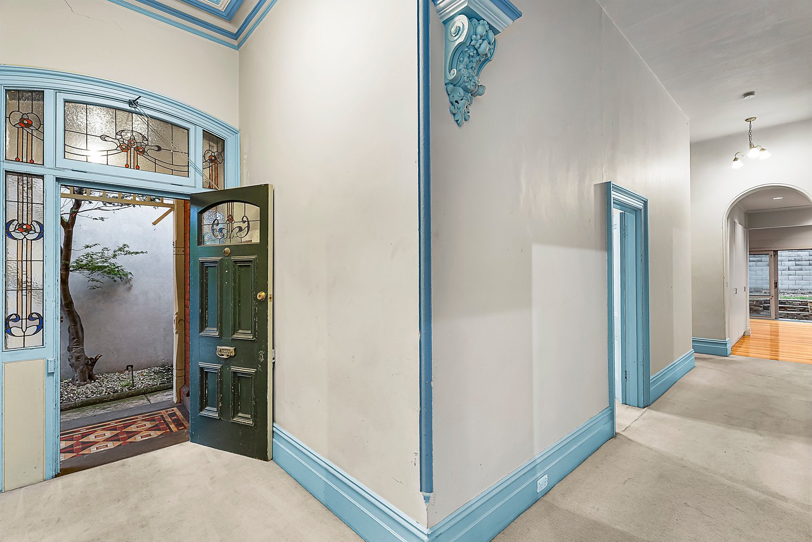 High ornate ceilings are featured in the arched entrance hall, gracious sitting room with open fire and 4 double bedrooms all with fireplaces and a sky lit bathroom. Timber floors flow through the large kitchen and light-filled living and dining room opening out to a private garden with wide stone terrace.