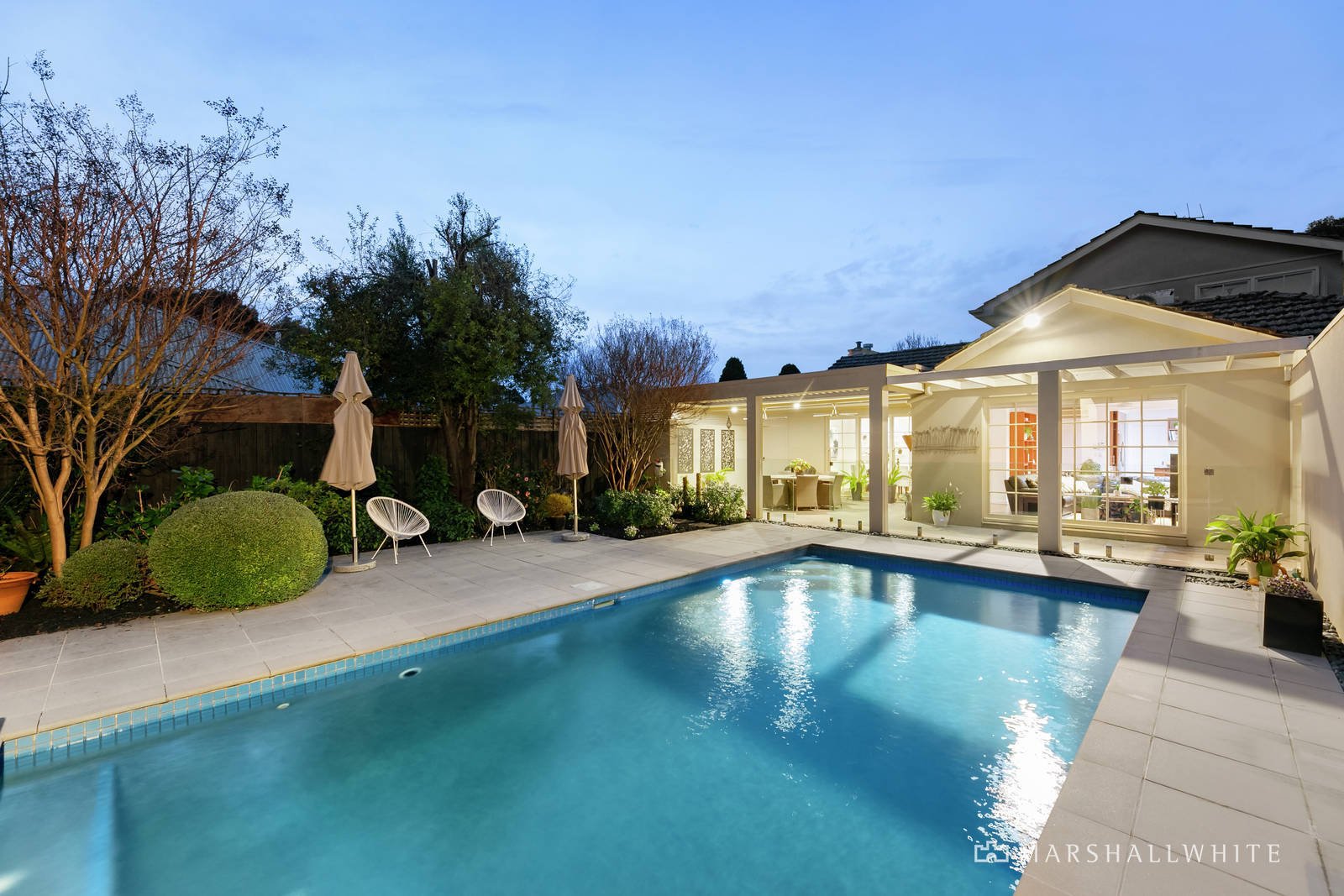 Beautifully set within glorious, landscaped garden and pool surrounds of some 871sqm (approx.), this impeccably presented contemporary 5- or 6-bedroom family residence exceeds every expectation in terms of space, style and functionality. Further enhancing its family appeal is its perfect location in a quiet cul de sac only moments to prestigious schools nearby, Cotham and Burke Road trams and Deepdene Village.