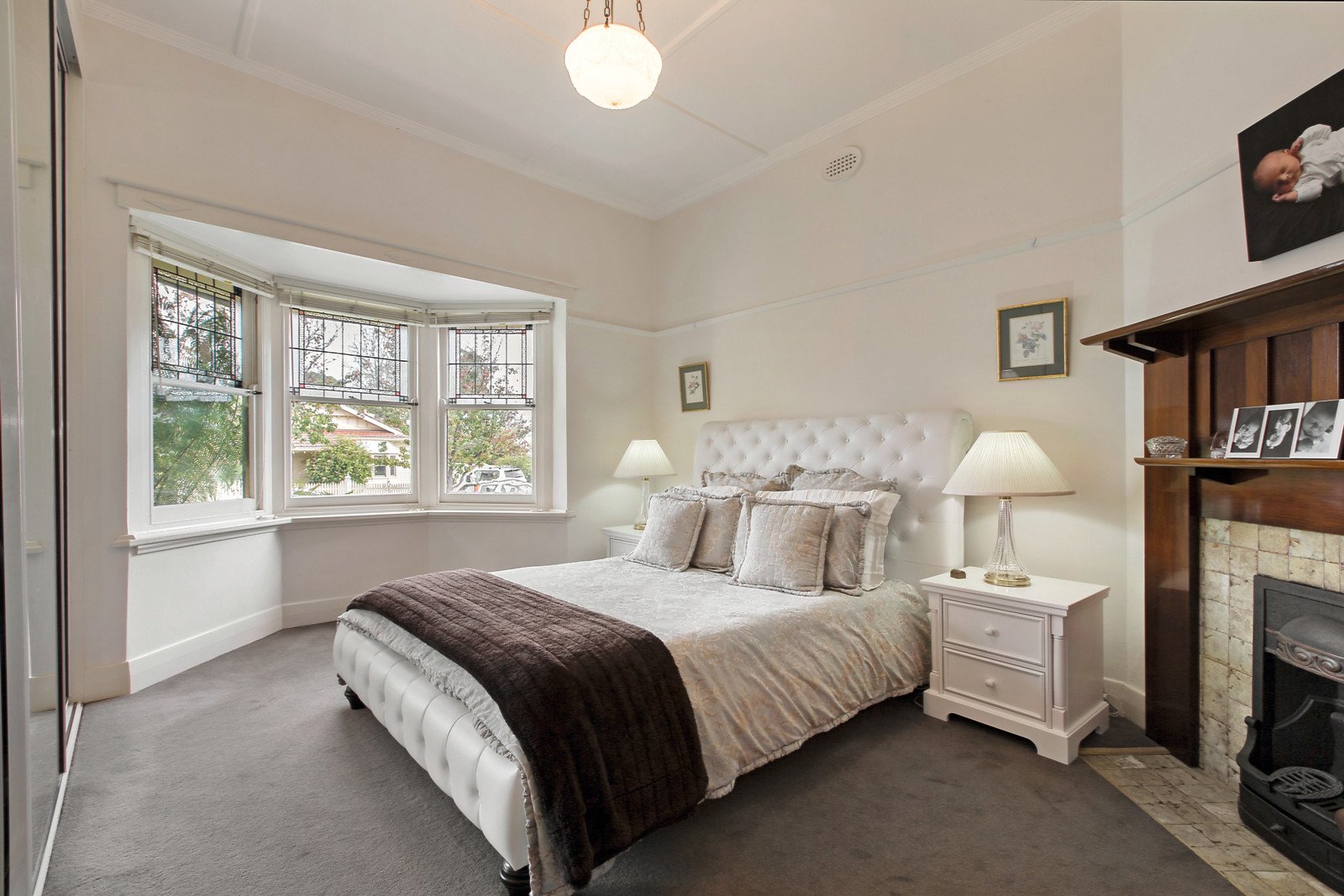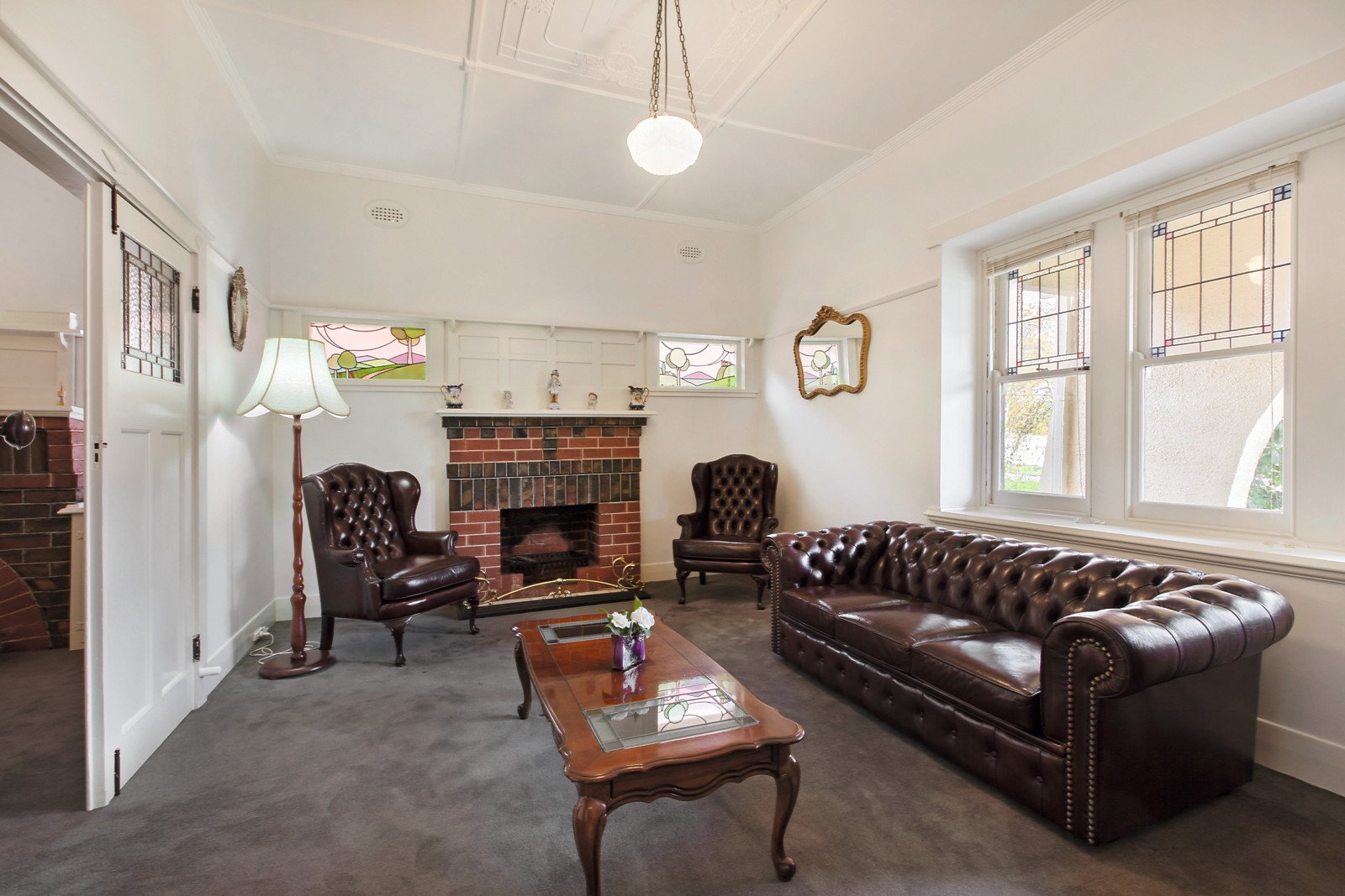 The interior comprises coloured leadlight windows, decorative ceilings and tiled hallway opening to a formal sitting room with double doors to the dining room both with OFPs, study, three zoned bedrooms, main with bay window, two family bathrooms and laundry. Complemented by a generous family living and entertaining precinct incorporating a Tasmanian Oak kitchen/meals with Bosch appliances and separate living room overlooking a gas/solar heated indoor pool and spa leading to a sunny bluestone paved outdoor area dominated by two magnificent Canary Island Palm trees. Other features include alarm, ducted heating, remote garage/storage and ample off-street parking