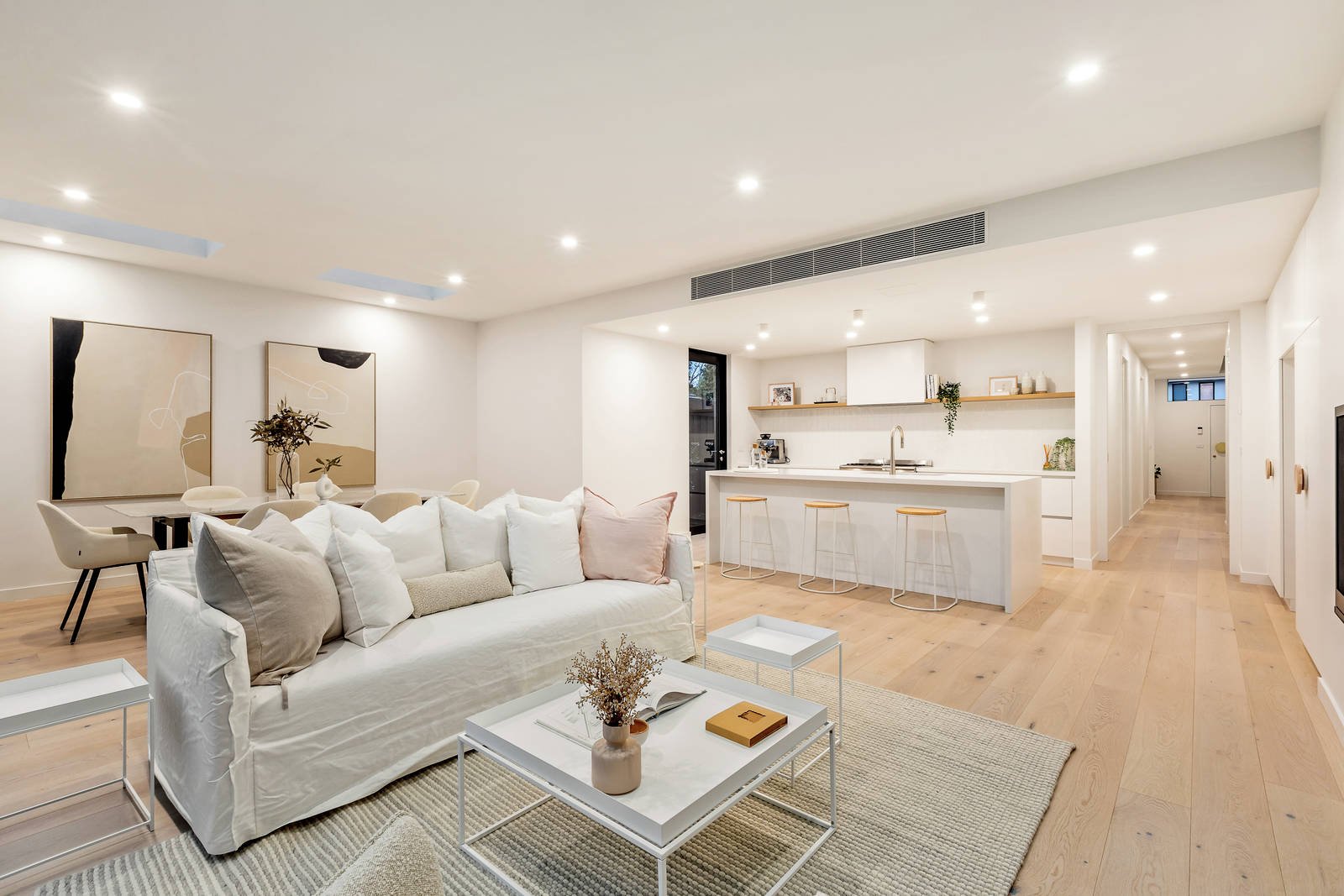 An exciting opportunity has arisen to purchase one of two brand new townhouses, meticulously designed and superbly fitted with the highest quality appointments built by boutique builders Dash Construct. Saturated in natural light throughout, skylights illuminate a coastal space showcasing soaring ceilings and engineered oak floors delivering a tranquil two level oasis.