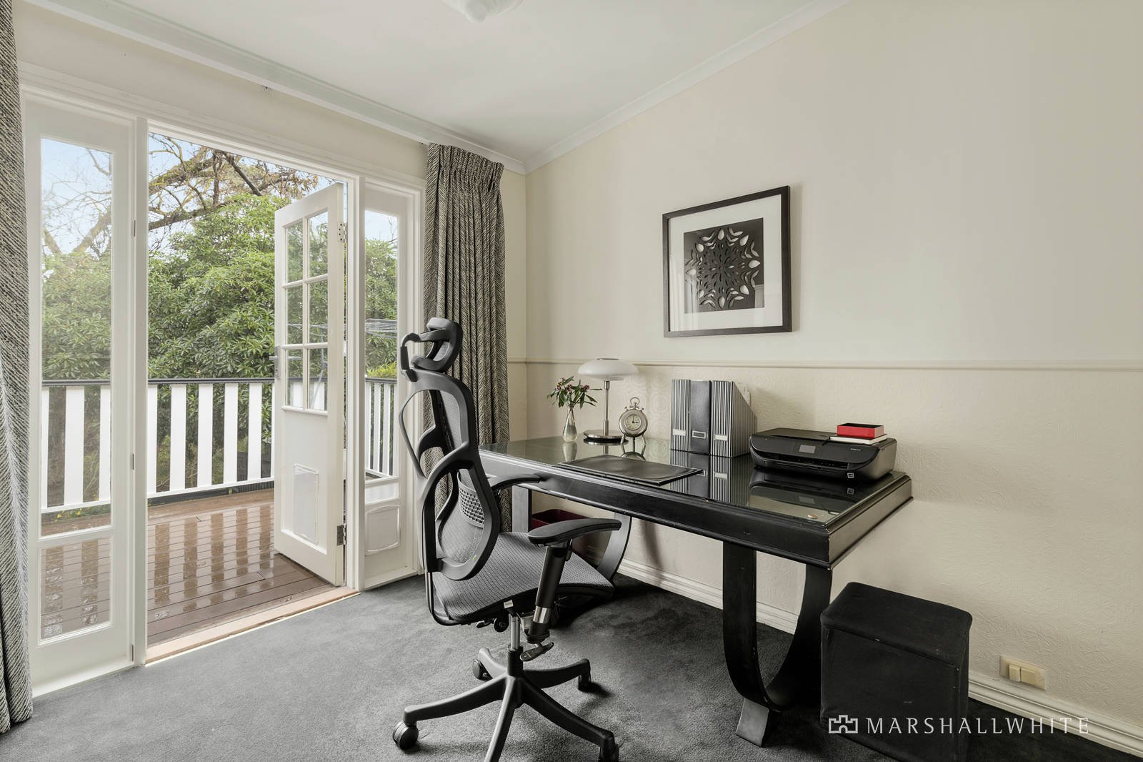 Further open space for sun lounging and relaxing leads down via steps to the captivating, landscaped garden with established trees and private gate access to Back Creek walking track to both Through road shops and cafe's and parkland area. Inside, the casual living area leads to a serene 4th bedroom/study with garden view and door to rear terrace. This magnificent home also features solar PV panels, and hot water, water tanks connected to outdoor taps and WC's, floating Spotted Gum timber floors, plush carpet, stunning Art Deco ceiling roses, ceiling fans in all bedrooms, statement lighting throughout, ducted heating, split-system heating/cooling in living area and a paved driveway with two-car tandem carport and ample space for off-street parking. Very conveniently located close to Riversdale and Through Road shopping and dining, esteemed schools, public transport and plentiful parkland areas. Land size: 669sqm approx.